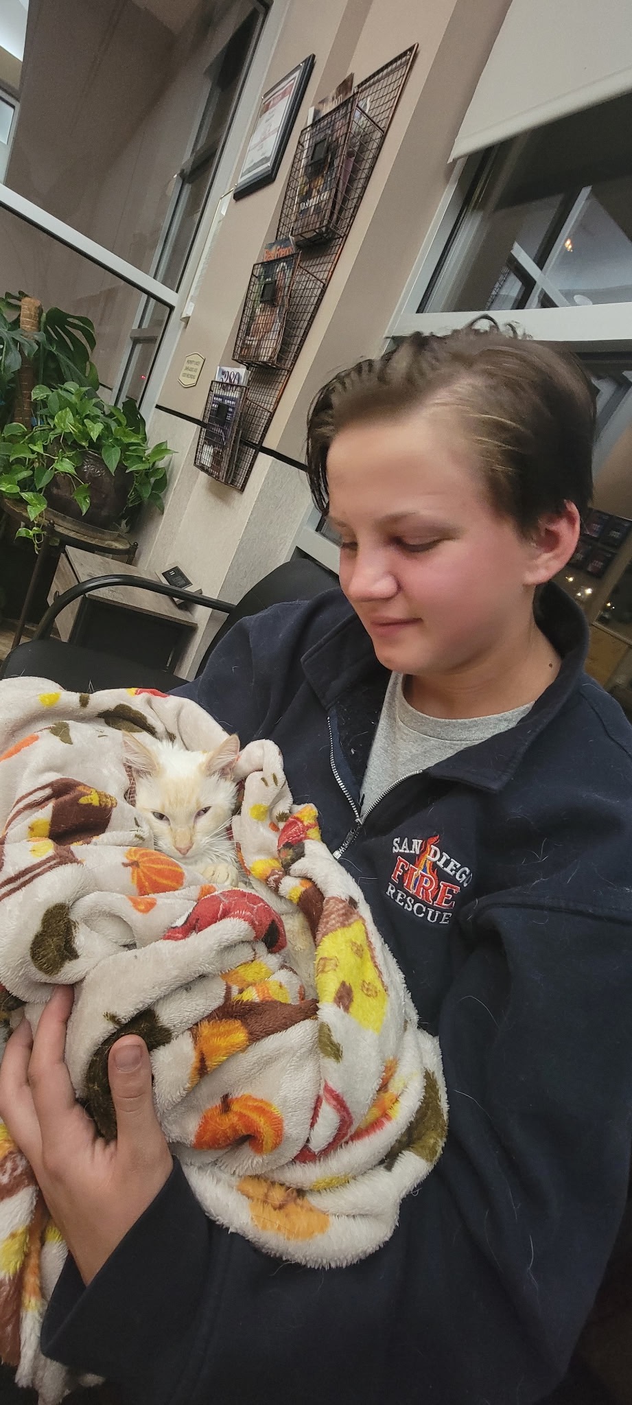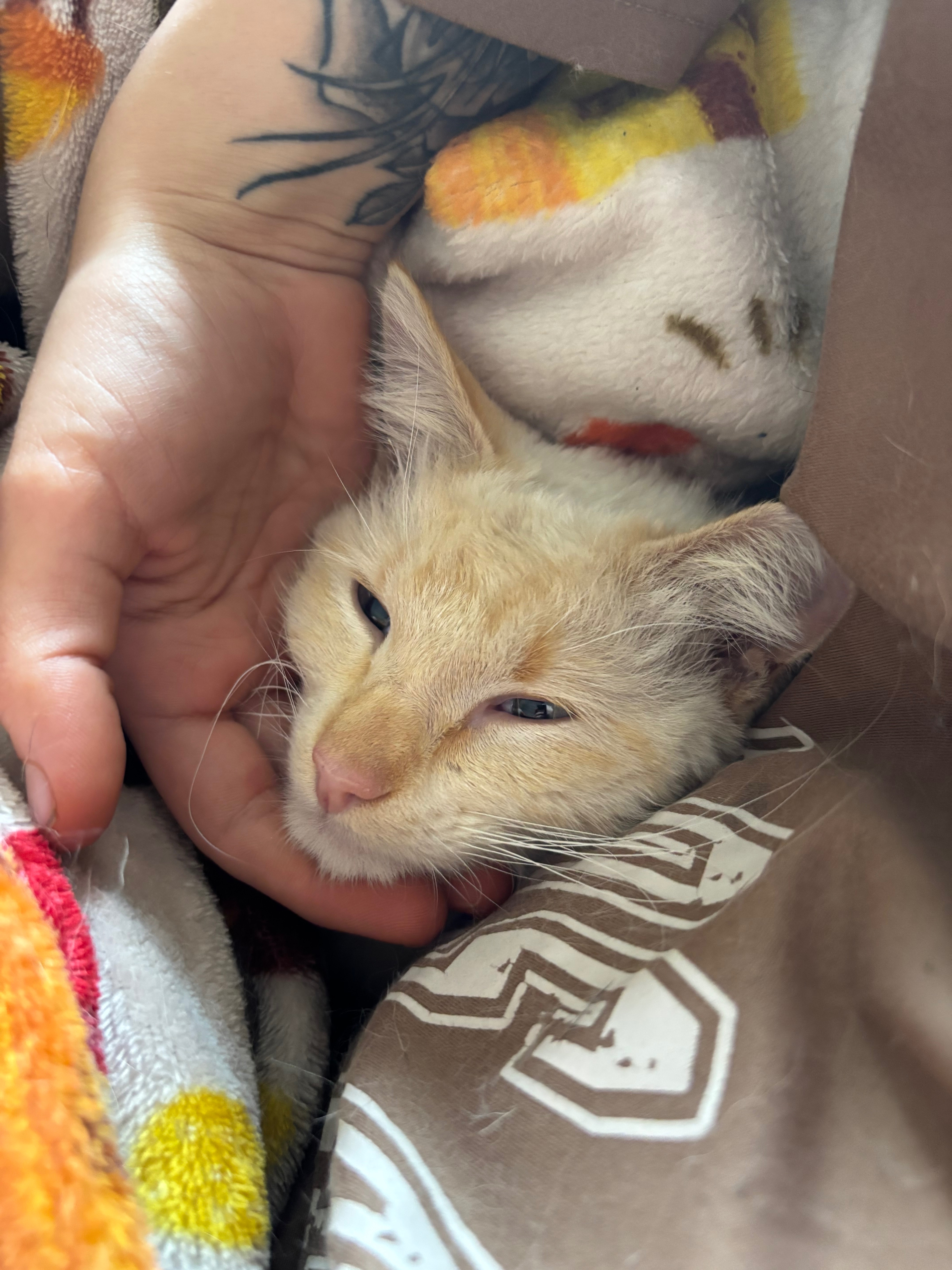 Recently, Flame’s health took a sudden and heartbreaking turn. Over the past few days, he began stumbling and losing his balance, and now he can’t even stand or walk on his own or use the litter box. After rushing him to the vet, we learned he has FIP, a serious illness that requires immediate treatment. Watching him struggle has been incredibly difficult, and we’re doing everything we can to give him a fighting chance.