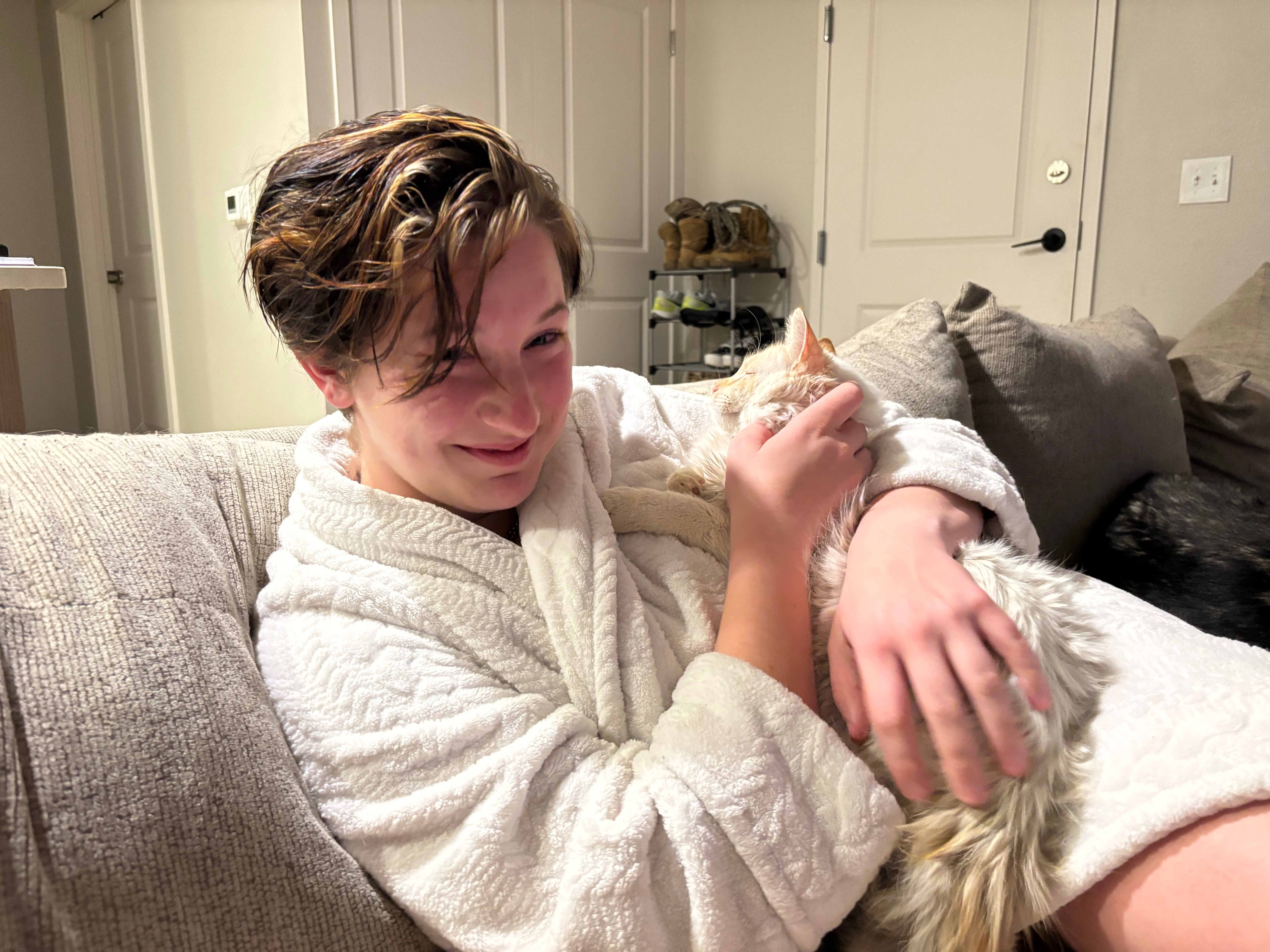 Flame is our one-year-old cat, and we adopted him from the shelter just a month ago. From the moment I saw his picture on the shelter’s website, I knew he was meant to be part of our family. He quickly became a beloved companion to both me and my wife, bringing so much joy and comfort into our lives in such a short time.