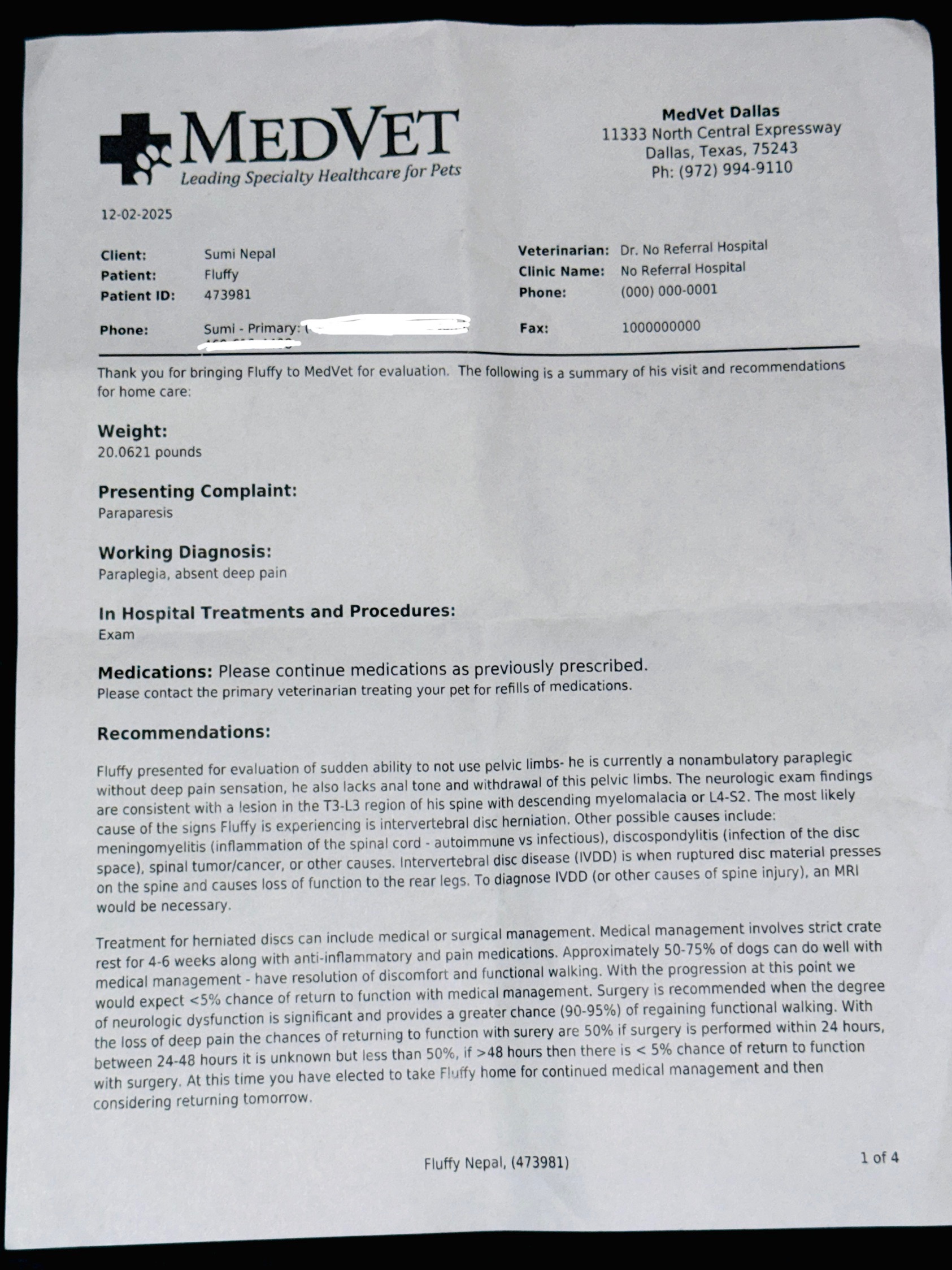 I took him to another hospital for an MRI and to see a neurologist. They diagnosed him with IVDD Stage 5, the most serious stage, and said he had no deep pain sensation. They told me surgery was his only chance to walk again and possibly even to save his life. Even though the chances were only 50/50, I chose to fight for him.