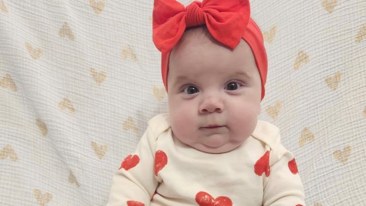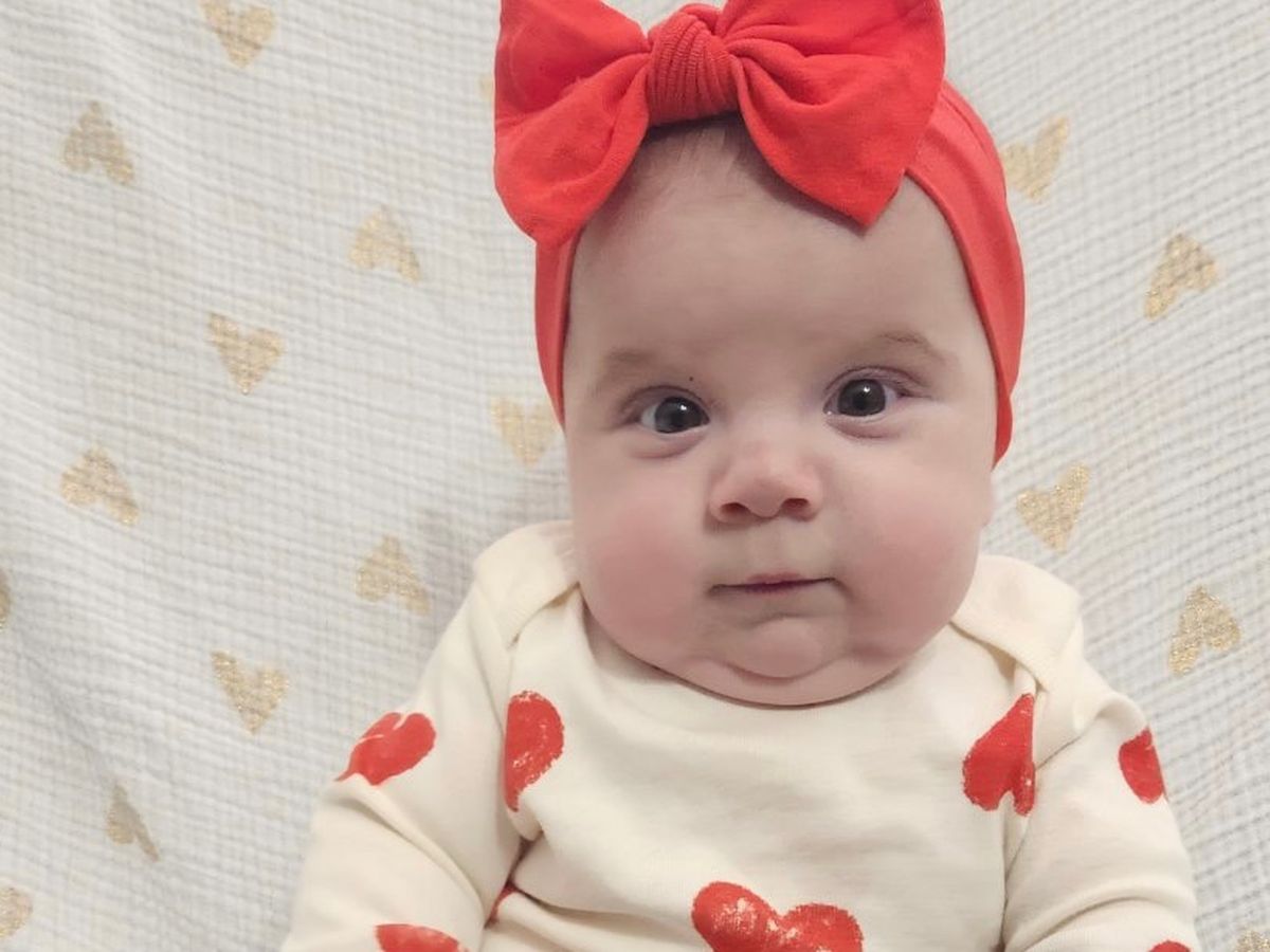 Su diagnóstico es atresia pulmonar y es una niña fuerte. Tuvo 2 procedimientos de laboratorio de cateterismo y 1 cirugía a corazón abierto a los 4 días de edad. ¡Ella estuvo en casa y prosperó superando todas las probabilidades durante 4 largos meses!