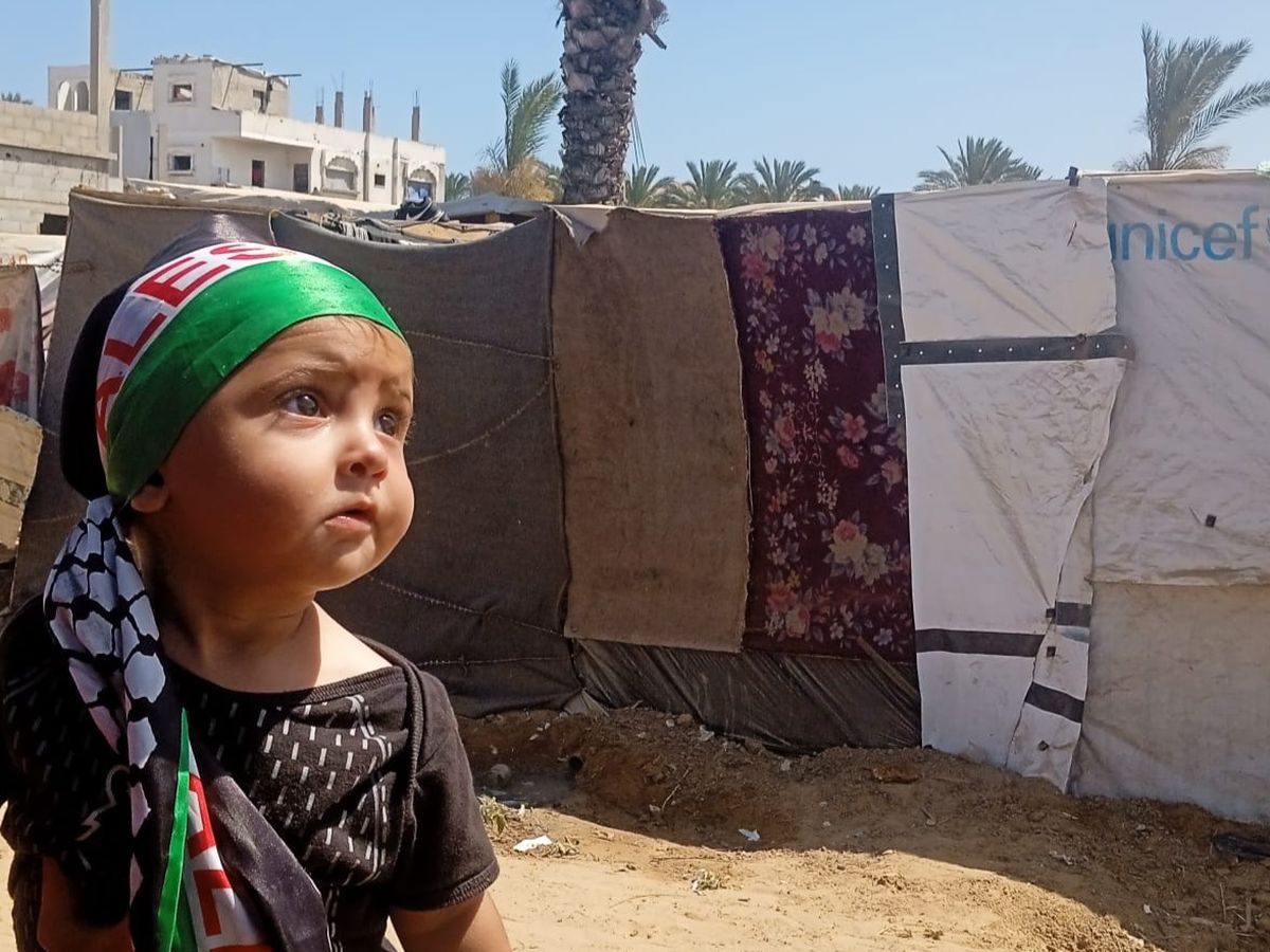 Lei e suo marito Naseem Nael Saadiabual- Qumbuz attualmente vivono nel campo per sfollati a Deir Al- Balah. Questa per loro è l'ultima tappa. Lei aveva una bellisima casa nella sua amata striscia a Al- Rimal. Lei e la sua famiglia vivono in una tenda, con pareti fatte di coperte, una parete è fatta di sacchi di farina che lei stessa ha cucito a mano e un tetto in nylon, che non da protezione nè dal freddo nè dal caldo nemmeno a suo figlio.