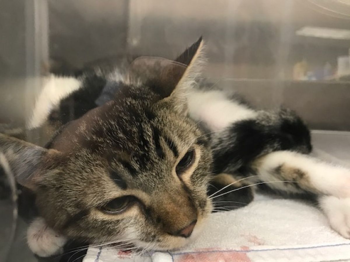 This little kitten was hit by a car and rushed in by good samaritans late Saturday night to BluePearl Willowbrook Animal Emergency in Houston, a city still half-underwater from Hurricane Harvey, with many pets and families displace. He had been hit by a car and was bleeding from the mouth and paws. His condition was serious, but stable. The staff there immediately scanned him for a microchip and to their elation discovered he had one, and it had been placed recently and registered with Harris County Veterinary Public Health! The staff at BP Willowbrook reached out to their friends at HCVPH to see if they could find out who the kitten had been adopted to in an attempt to reach the owner. The phones are down at HCVPH due to flooding so reaching them was tricky, but where there is a will there is a way!