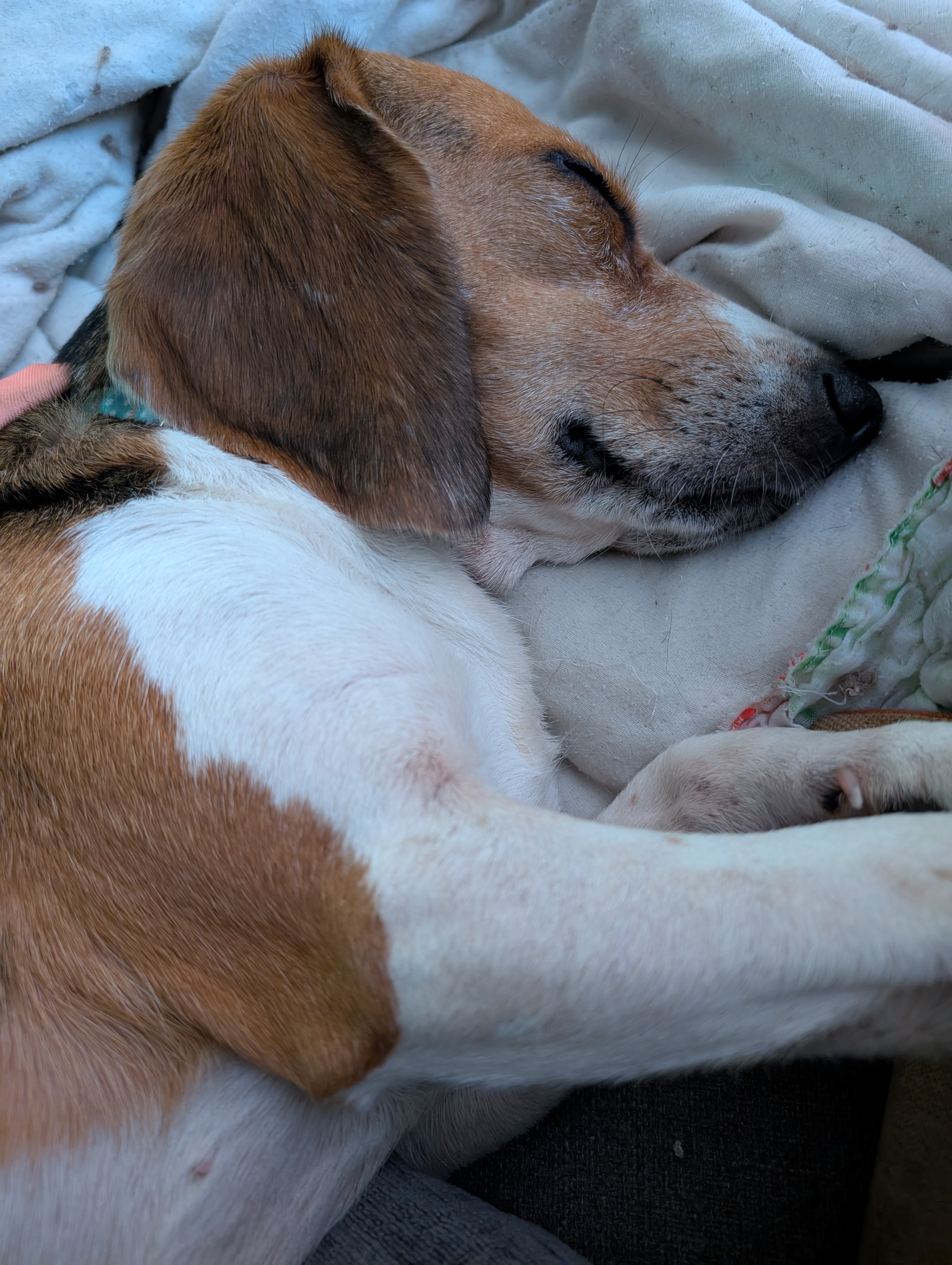 On May 26th, a female beagle was intentionally abandoned in the parking lot of a monkey sanctuary just outside Gainesville, FL. She isn't microchipped and nobody has responded to postings about her on lost pet sites, so I'm keeping the dog, who we've named Ladybird. She's suspected to be a breeder who was abandoned once she couldn't breed anymore, but we'll never know for sure. She's an incredibly sweet, timid girl, and we're so excited to be able to give her the loving home that she deserves!