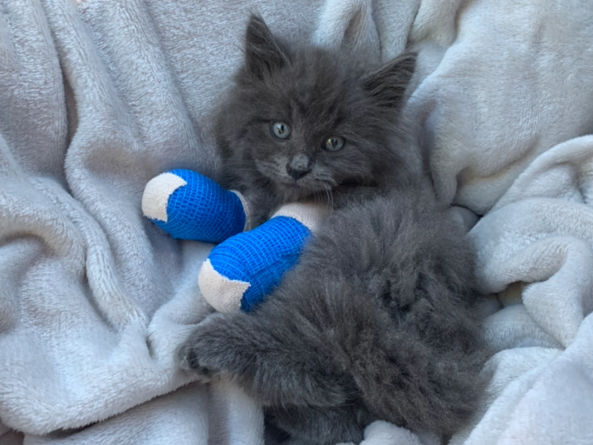 My name is Lauren and I am raising money for Eddie, a six week old kitten who lost his two front paws. On the evening of October 27th, Eddie was found under a barn at a small family owned pumpkin patch. All of the vet clinics and shelters had closed for the night, so we kept a close eye on him until the morning. With the help of some incredible friends, we were able to clean Eddie up and bandage his paws.