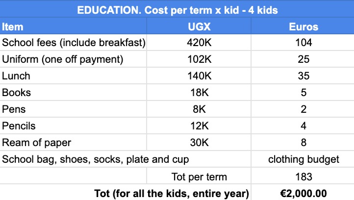 Empty house, no running water (no one in the village has it, they go to a well 200 meters away), no electricity, no furniture, no chairs (Promise, who speaks a little English, told me she has never sat down except on the floor... in 9 years she has never sat on a chair!), a mattress whose condition I won't describe, clothes that we would consider rags to be thrown away, no medical care whatsoever, zero (one day I noticed that Promise had burned two fingers with fire, I noticed it 3 days later, and we immediately went to the emergency room where they had to give her intravenous antibiotics for 4 days for a beginning infection, in addition to cleaning, bandaging, etc... cost 25 euros, nothing for us, absolutely prohibitive for them, about 6 days of her mother's salary... so they don't say anything and wait for the pain and infection to go away).