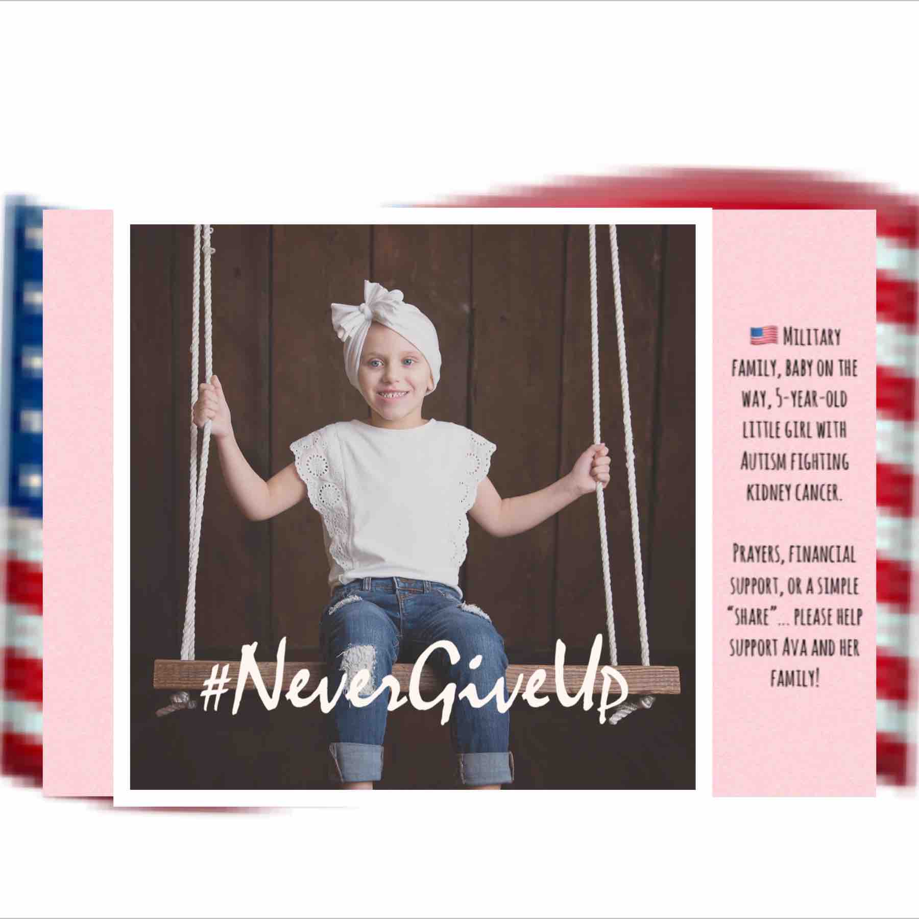 Meet Ava, Morgan, and Zach Rader.  Zach is currently deployed overseas, Morgan is 7 months pregnant, and sweet Ava, 5 years old, was just diagnosed with Stage 3 Kidney Cancer (Wilms Tumor).