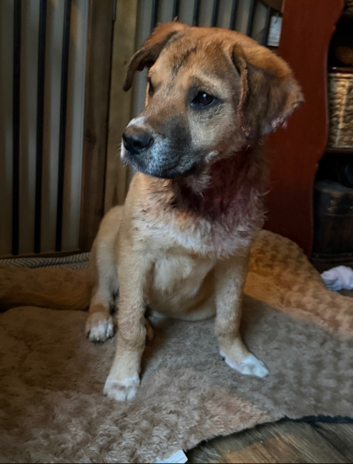 Hi everyone, this is my latest foster. He’s gonna need a bit of extra help. He’s got head, ear, neck and leg injuries. It looks like his leg broke and is healing wrong. He has a vet appointment Tuesday. I’ve taken in a dozen dogs over the last few years, and it can be pretty financially stressing. Especially right now but I can’t leave him like that. So if you’d like to help me help this sweet boy, we’d really appreciate it. I’ll post all of his updates!