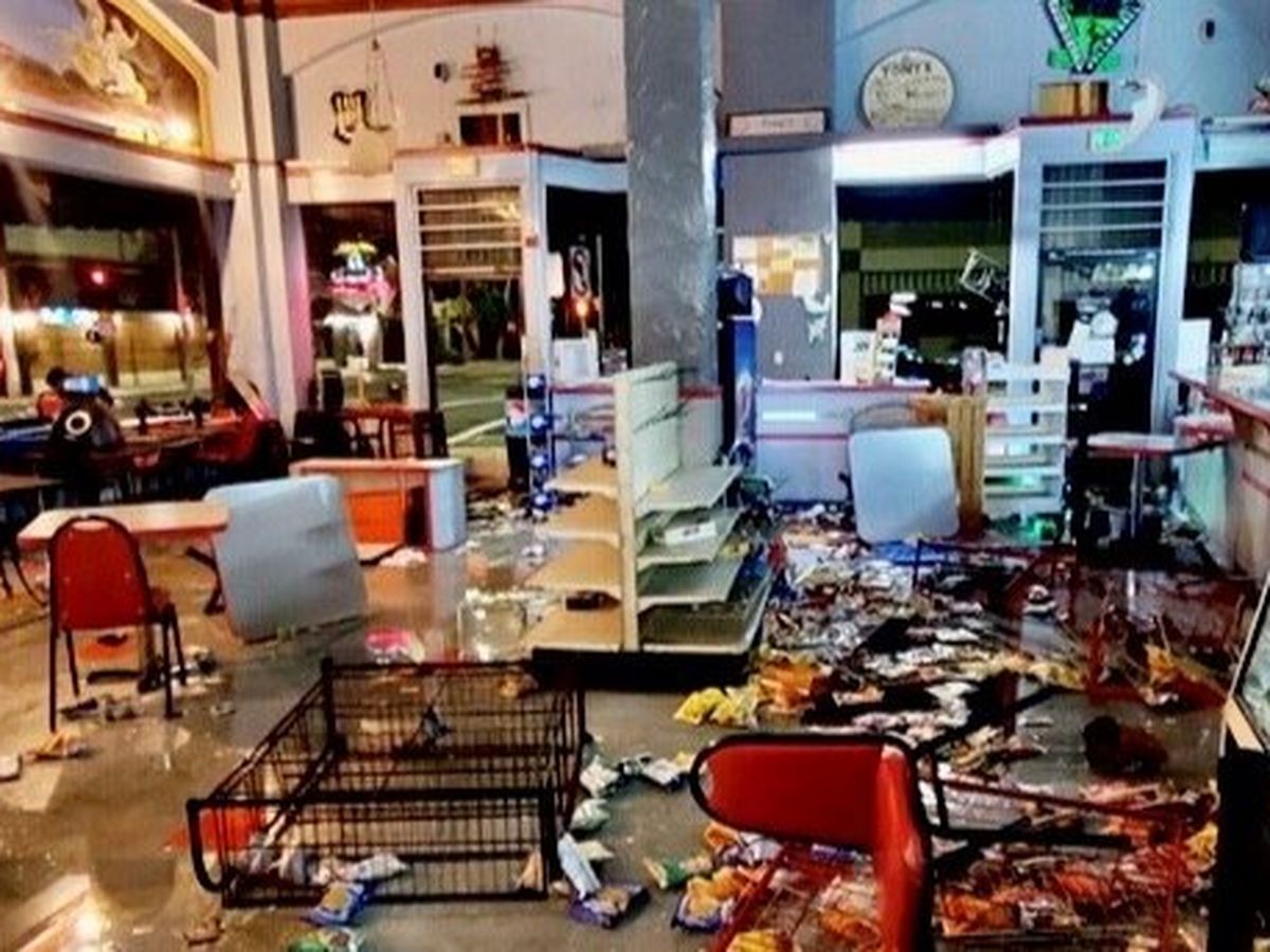 The windows are all shattered, refrigeration systems destroyed. The deli and basement were flooded, causing water damage. Thousands in food loss and seating. And industrial kitchen appliances and safe stolen.