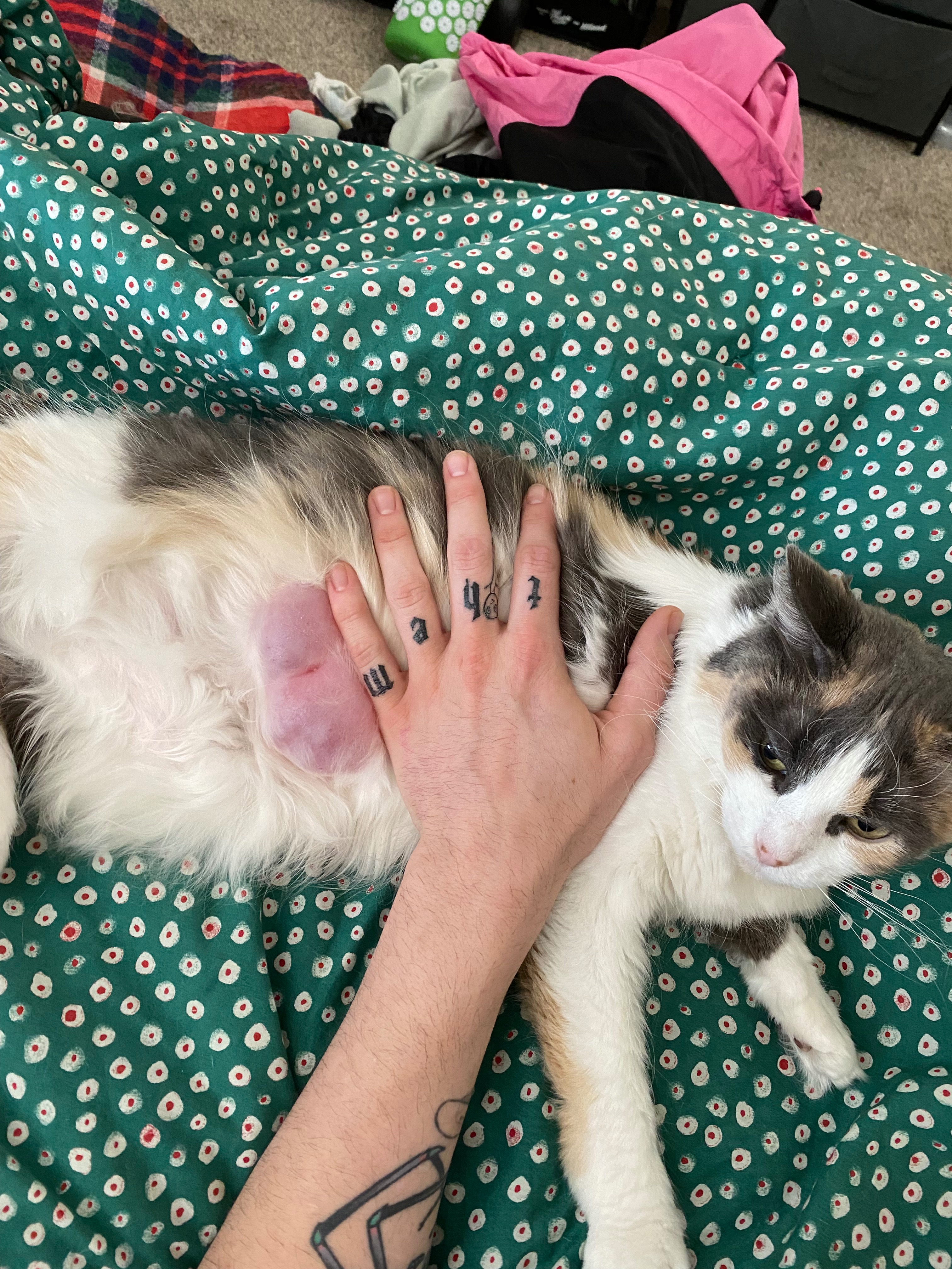 Foster is my friend's beloved 15- year-old cat, and she means the world to him. Recently, a mass appeared on Foster's lower abdomen, and despite the vet monitoring it, the situation has quickly become urgent. In just this past week, the mass has tripled in size, leaving Foster in pain and unwilling to eat. The vet isn't sure exactly what the mass is, and they won't know until it can be removed. Aside from this swelling, Foster is in great health, and her sweet personality shines through even in tough times.