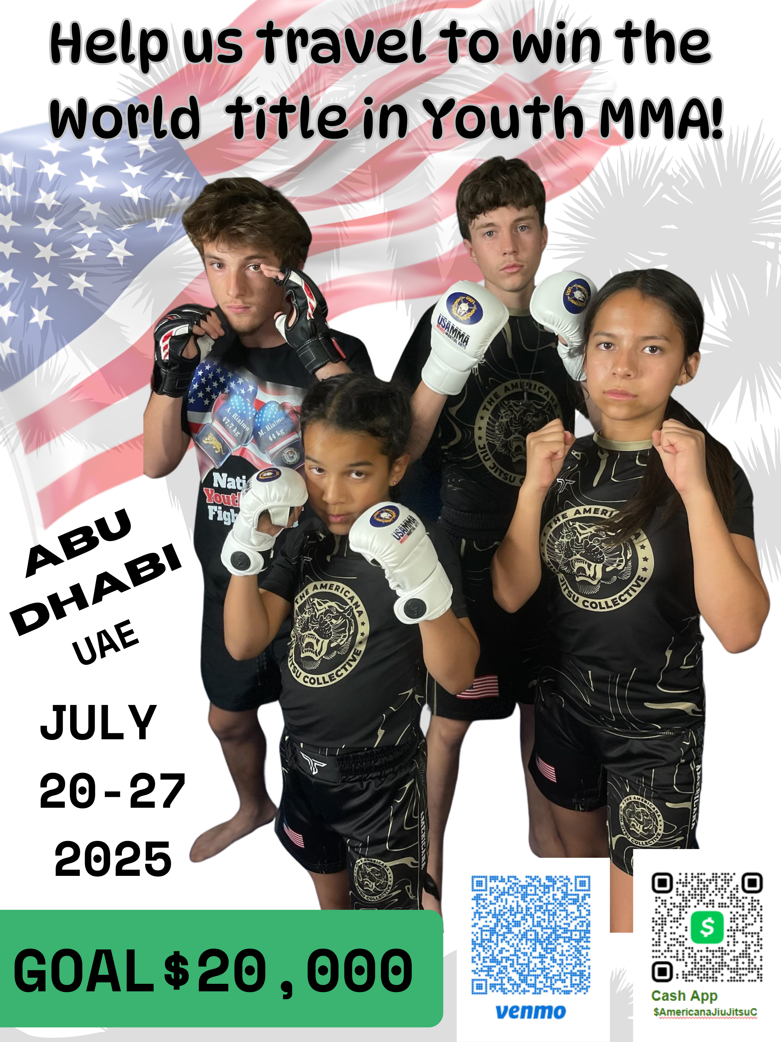 Hayden 16, Sofia 10, Samerica 12 and Thor 17 have been training relentlessly in preparation for the 2025 IMMAF Youth Amateur MMA World Championships in Abu Dhabi. They have dedicated themselves to training and mastering mixed martial arts. These four young athletes will be competing against other fighters from many different countries all for the same goal, 1st place, the best of the best.