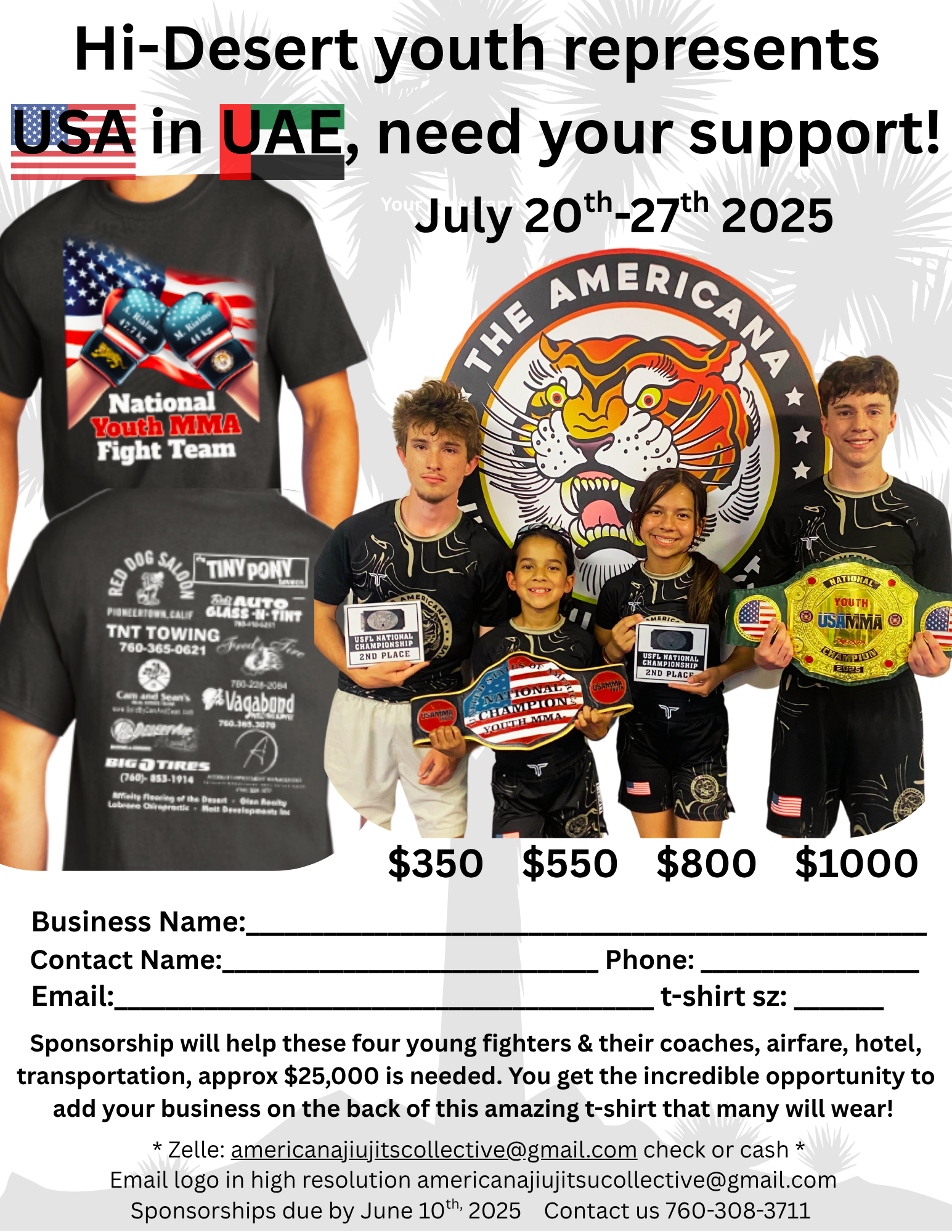 Together we can enable them to showcase their skills on an international stage and representing our community with pride. By supporting these young fighters, we demonstrate the strength, resilience, and unwavering support of our community.