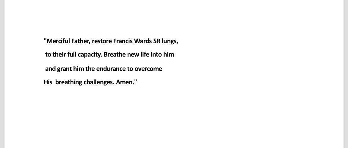 Francis Ward Sr, is in need of financial help for upcoming medical expenses. To get accepted into the Lung Transplant Registry, so he can be able to receive a lung transplant.