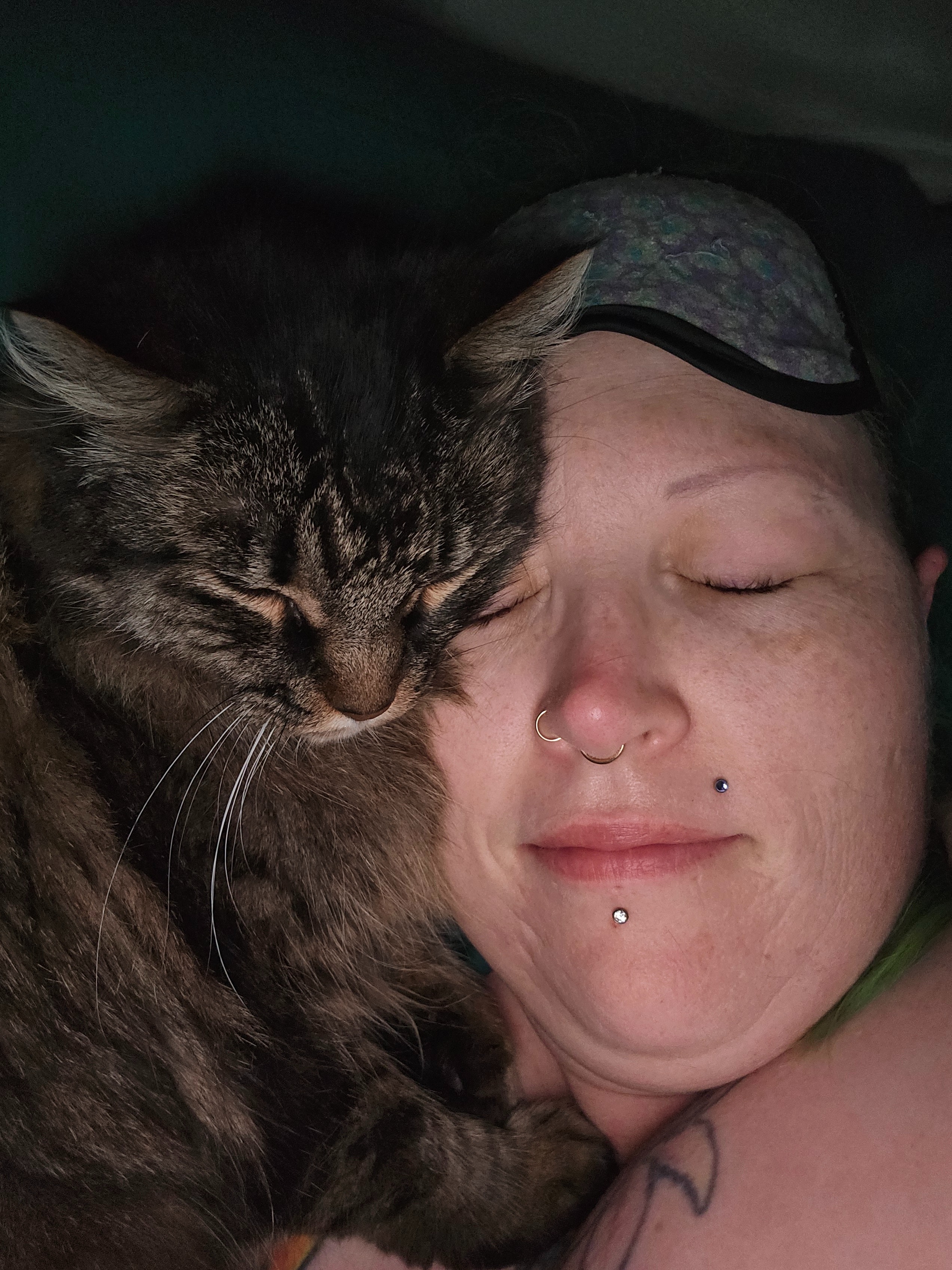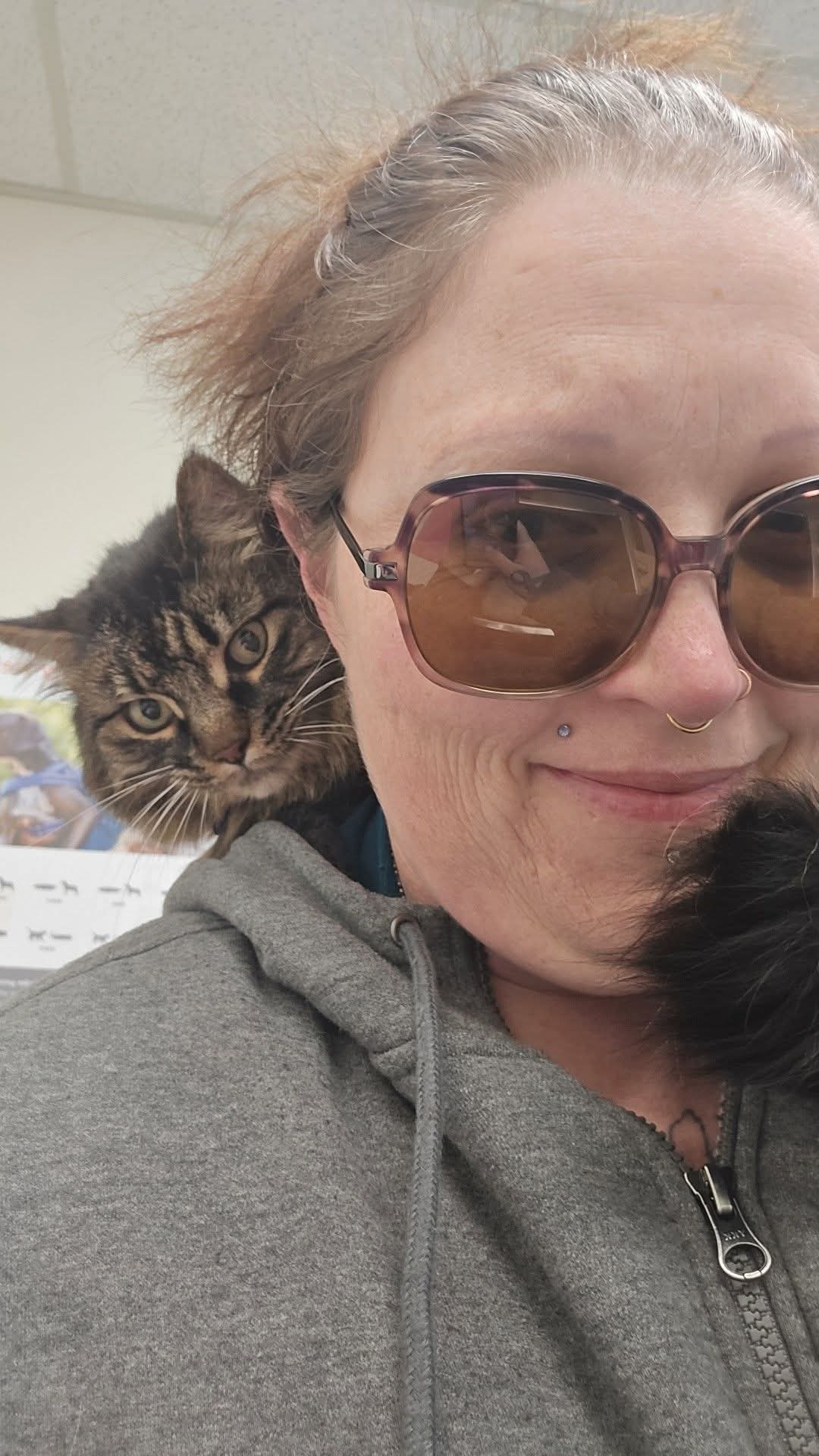 Freya has been in perfect health all these years, still her lively, talkative, tabby self, and I know she’s got so much more joy ahead of her. She loves to chitter at the birds she watches from her window perch, curl up at night next to my head on my bed, and sit across my shoulders while I'm in class becoming a Substance Use Disorder Counselor.