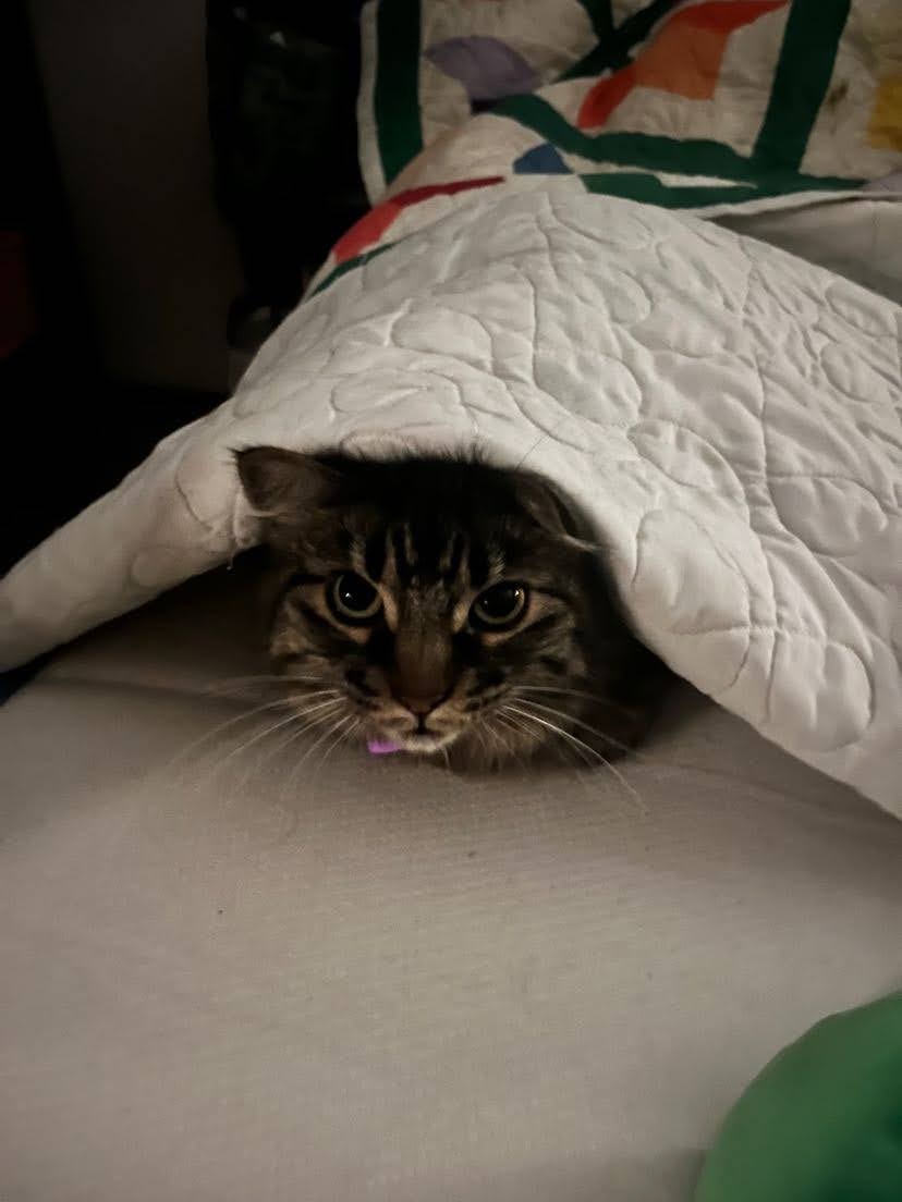 I’m asking for help for my beloved Freya. She picked me at the shelter 10 years ago by jumping on my shoulders—and she’s been my talkative, shoulder-sitting pirate kitty ever since. Freya snuggles into my neck as if she could crawl right into my heart, and everyone who meets her falls in love. She’s also a wonderful dog sister to Bri—those two are inseparable.