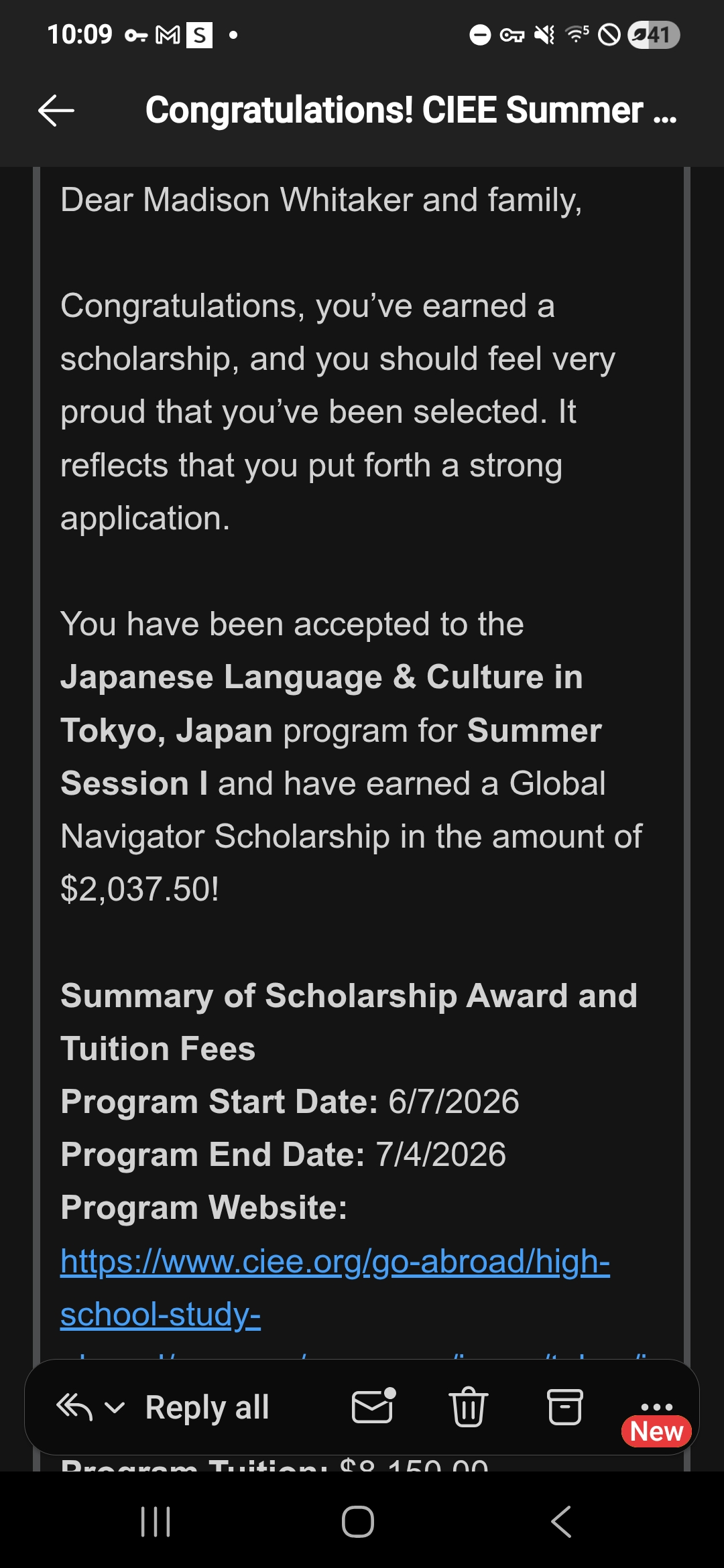 Hi everyone! I’m so excited to share that I’ve been accepted into a study abroad program through the CIEE (Council on International Educational Exchange)! with this program I'll be able to gain college credit and experience a whole new country! I was honored to receive a $2,000 scholarship toward the program, and I’m incredibly grateful for that support. However, I still need to raise $8,000 by Apirl 1st to participate in the program.