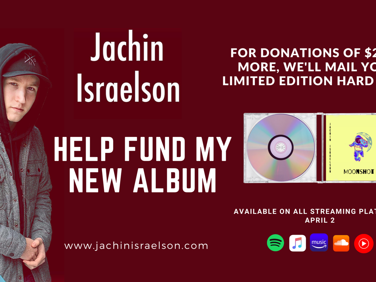 Hey folks! It's Jachin Israelson, and I'm excited to say that the new album Moonshot is coming on April 2! For years I've always dreamed of writing and recording my first album, and it's hard to believe that it's finally here! I want to say a big thank you to everyone in my life that has supported me already, and I want to give more people the opportunity to donate towards my music and the cost of production. For those who donate $25 or more, I will mail them a limited edition hard copy CD as a thank you! If you donate, please contact me through www.jachinisraelson.com so I can mail you the CD.