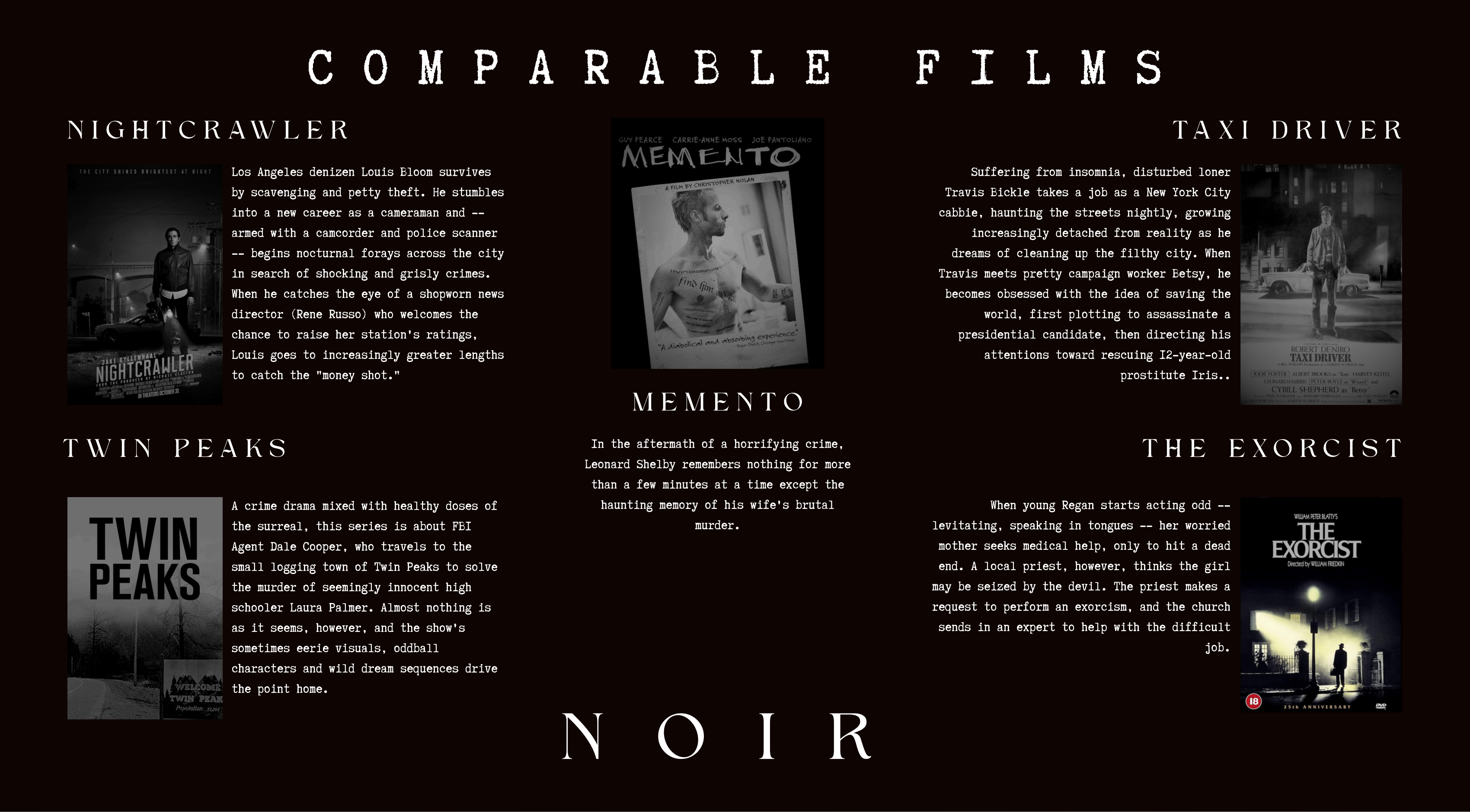 LOGLINE: In late 1960s-America, a troubled vigilante has the ability to interact with the memories of his victim's ghosts, but when one mesmerizing encounter leaves him obsessed, he begins an investigation that will change everything.