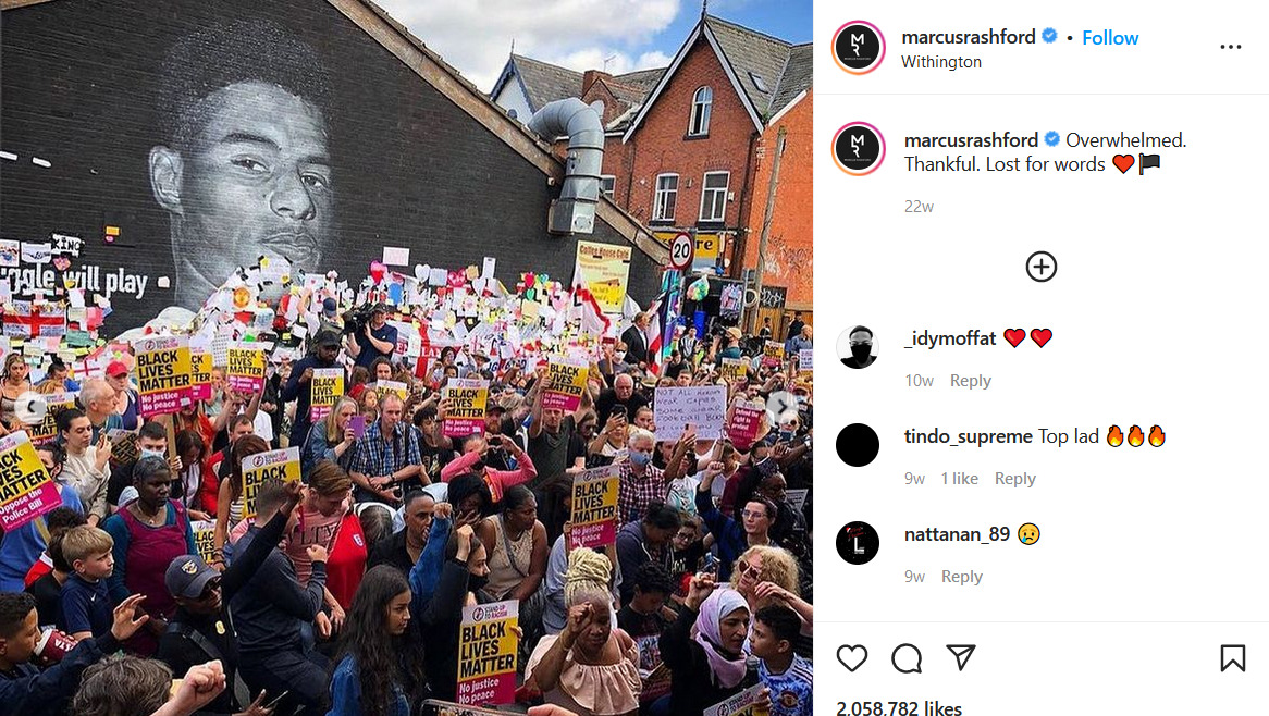 Mobilising opposition to racism in football was a major part of our work in 2021, beginning with the online event above, and culminating in events around the country in solidarity with black footballers subject to racist abuse, most famously in Manchester where a huge crowd gathered in support of Marcus Rashford, who responded on instagram with "Overwhelmed. Thankful. Lost for words ♥️". A large network of fan groups across the country was put together to coordinate support for players taking the knee and opposing attempts by the far-right to infiltrate football grounds.