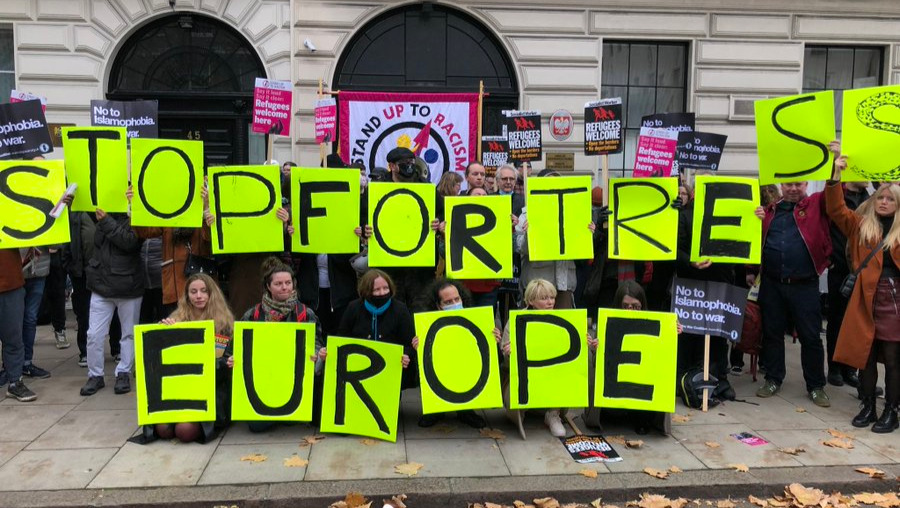 We worked all year round to build solidarity with refugees, and the tragic and preventable deaths in the English Channel were a terrible moment for all who value human life. In response we joined with Care4Calais to call an emergency protest outside Downing Street demanding safe passage for refugees and opposing measures in the Nationalities and Borders Bill that put even more lives at risk. A week before we organised a demonstration at the Polish Embassy against the treatment of refugees at the Poland-Belarus border.