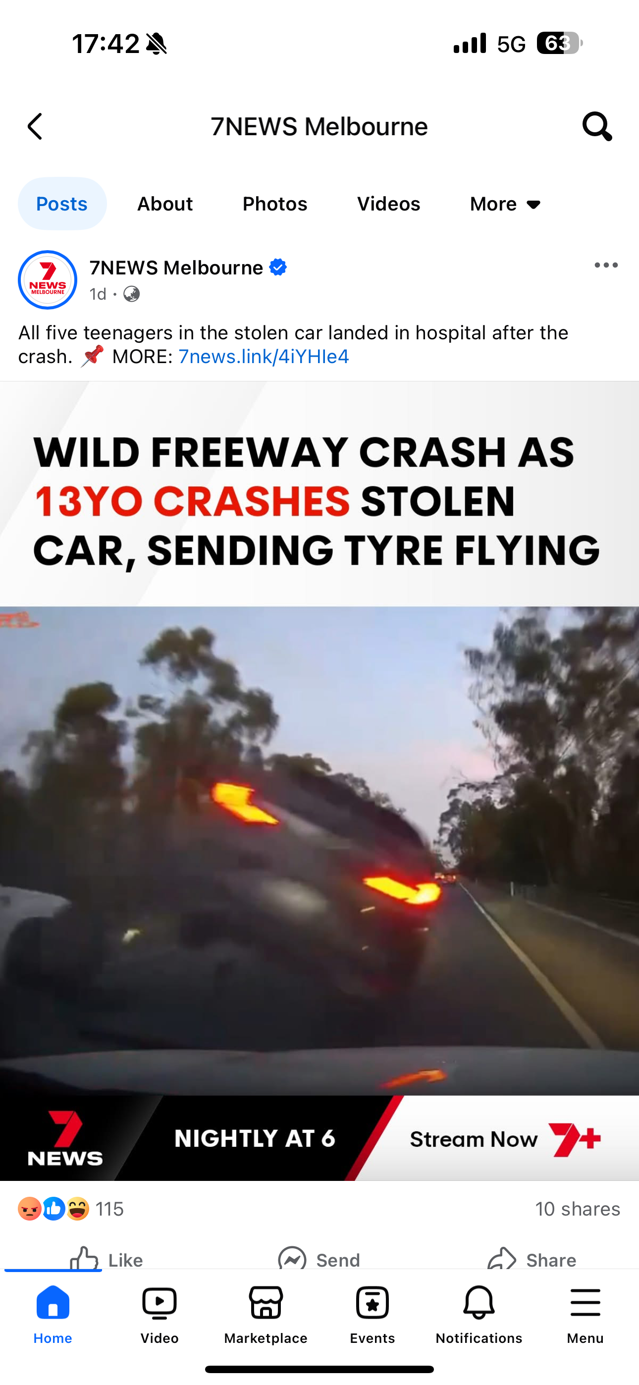 The car which collided with Gage was driven by 5 teenagers who had stolen the vehicle from South East Melbourne.