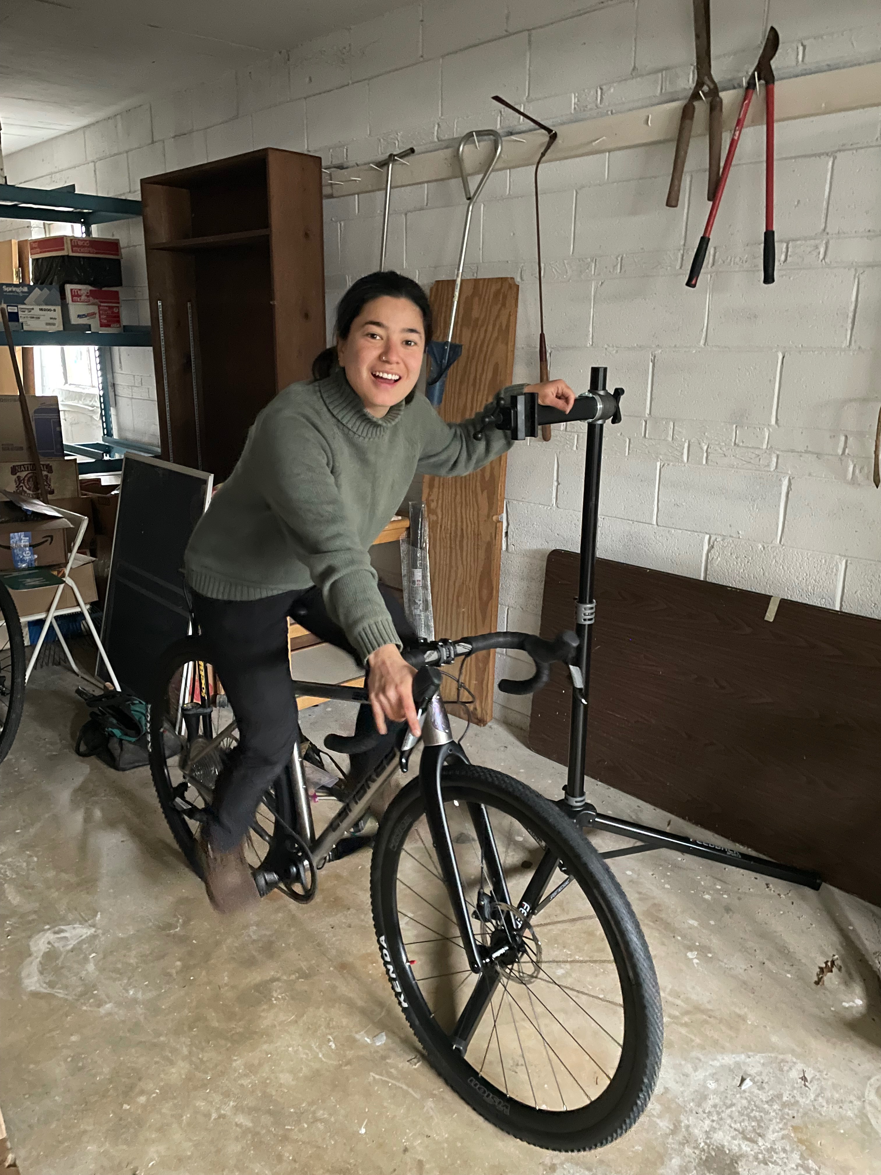 Don't worry, Galatea is well-prepared with top-of-the-line gear, including bike tools, saddles, maps (both physical and digital), camping gear, a mini portable kitchen—you name it. She has plenty of space for hydration and is physically and mentally ready for the journey.