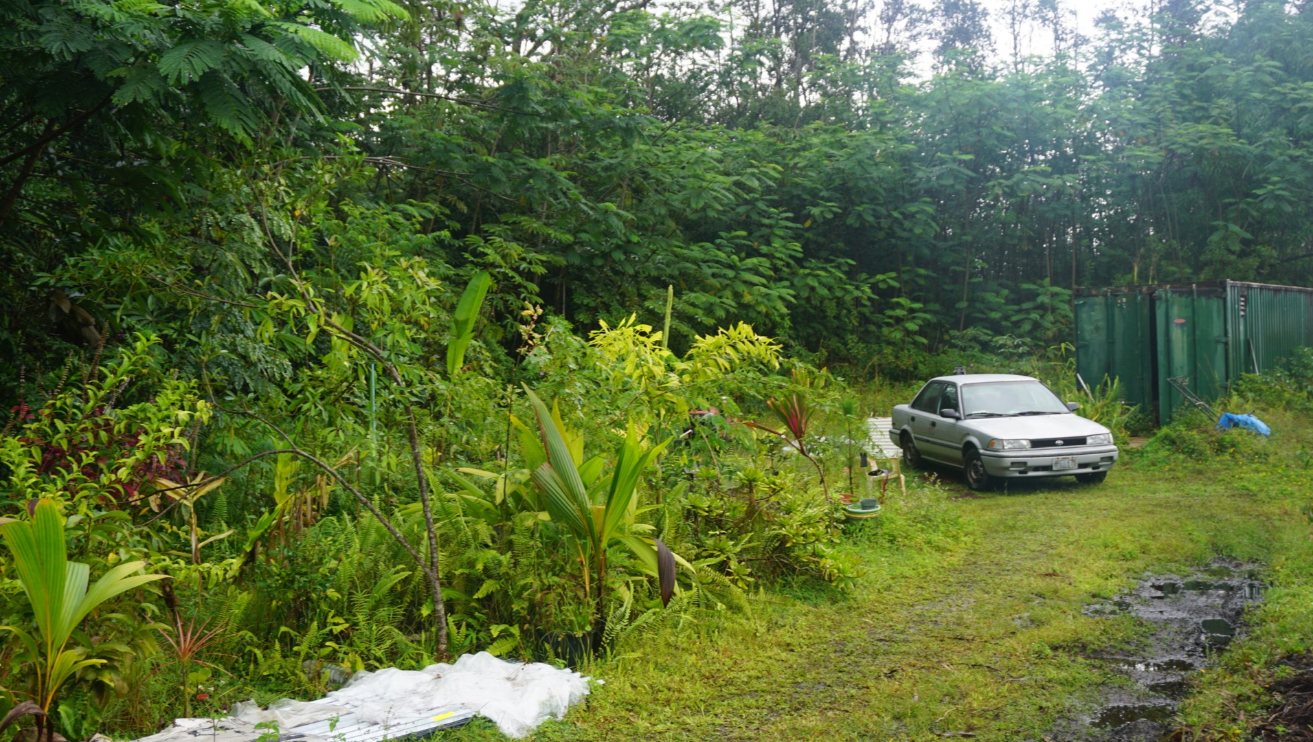 He lives on his acre of land, sleeping in the passenger seat of his old Toyota Camry, and only has a rusty storage container to hold his belongings. He lives off-grid, depending on the rain for water and only has a lone 650 watt solar panel to charge his power tool batteries and his very old iPad. He does have a place in the town of Hilo to take showers, and every Monday, takes the day off to do his laundry.