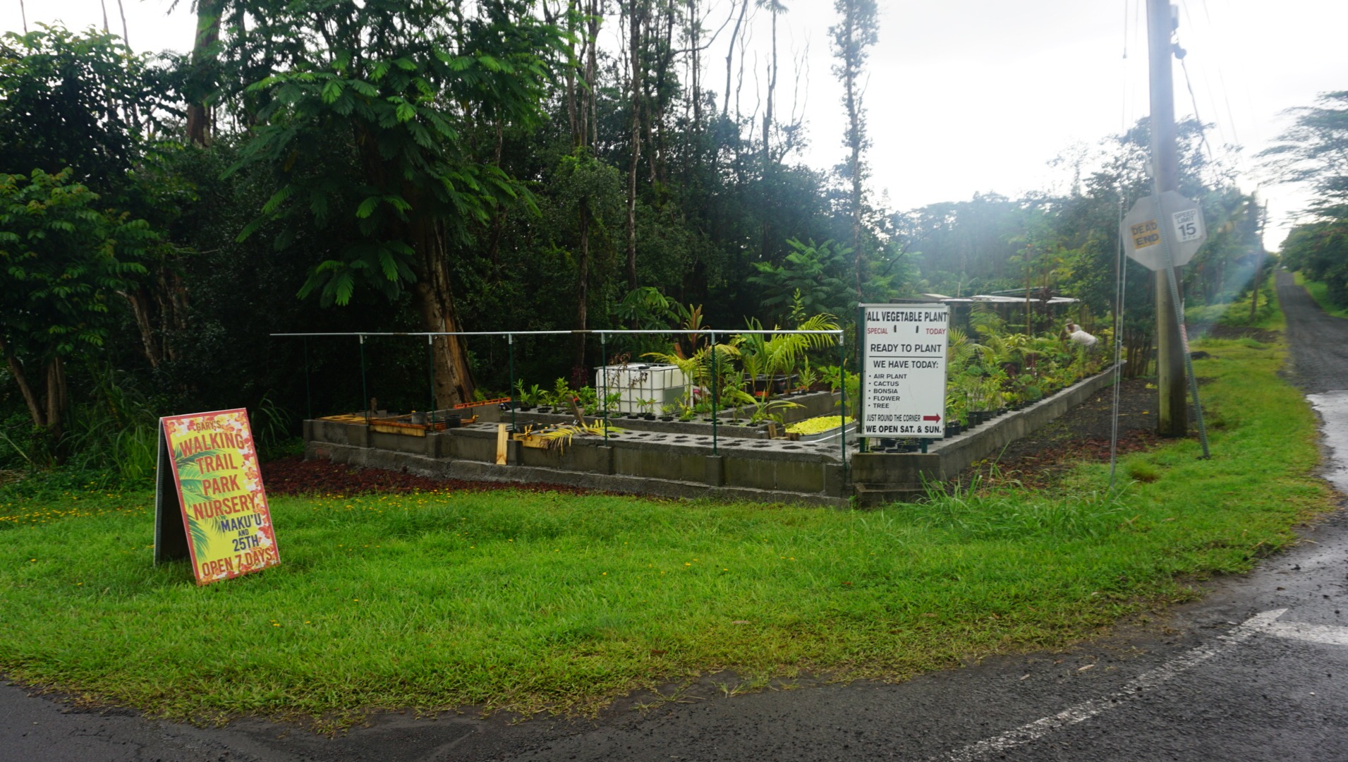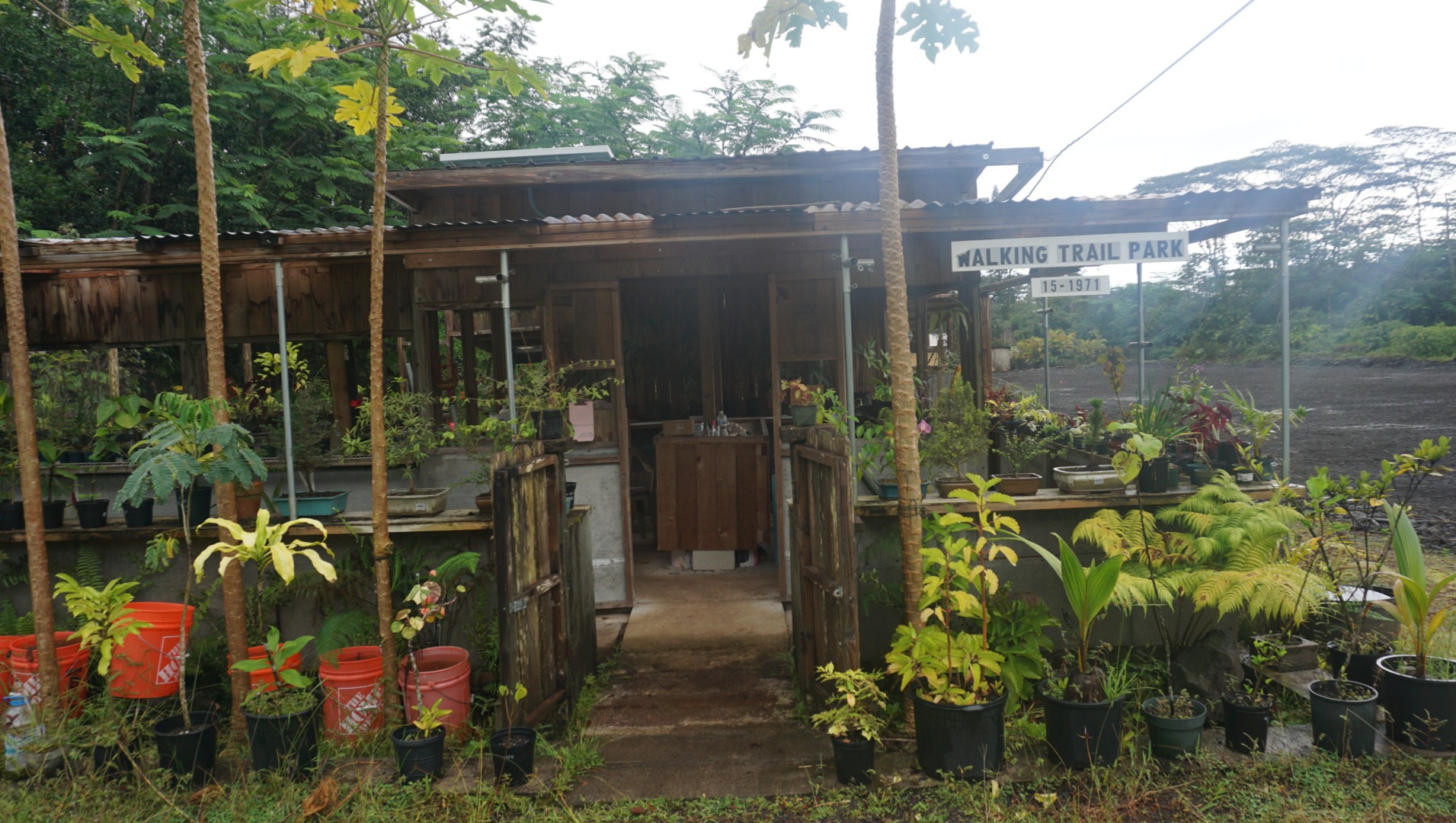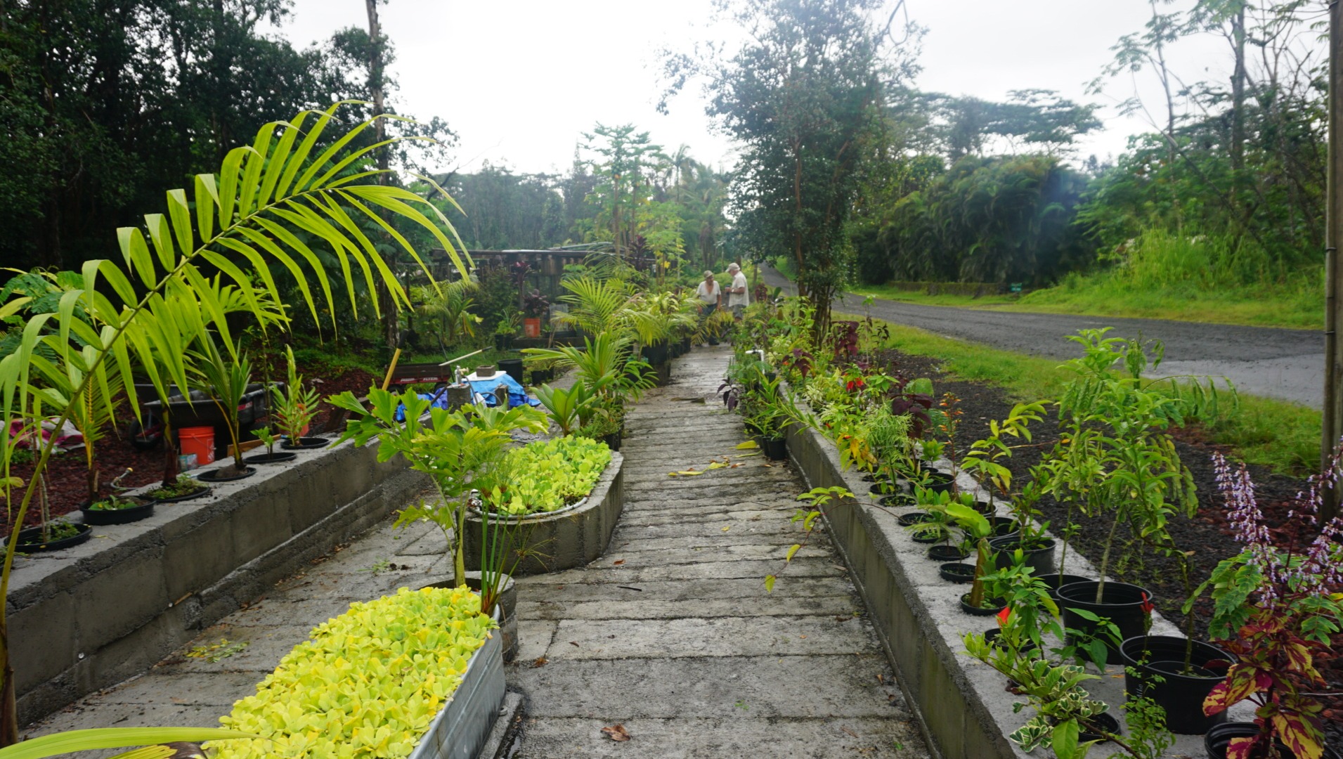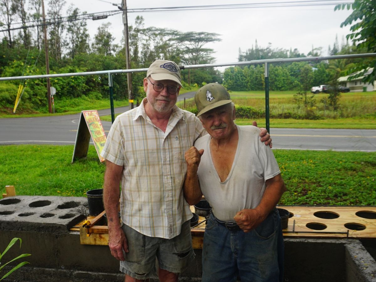 With the very occasional help of a volunteer, Gary has been, and is determined, to make his dream of the Walking Trail Park Nursery come true. Gary spends most hours of daylight working. From planting and digging, to pouring his own concrete for shelves to hold all of his plants (See photos attached below, it's truly amazing work). He does this by sifting lava gravel by hand, a couple of shovelfuls at a time, through a screen. Once he has enough, he adds the correct amount of Portland Cement and water, which comes from rain off the roof of his nursery. He places one shovelful at a time in his rudimentary forms, and finishes it carefully with a small trowel.