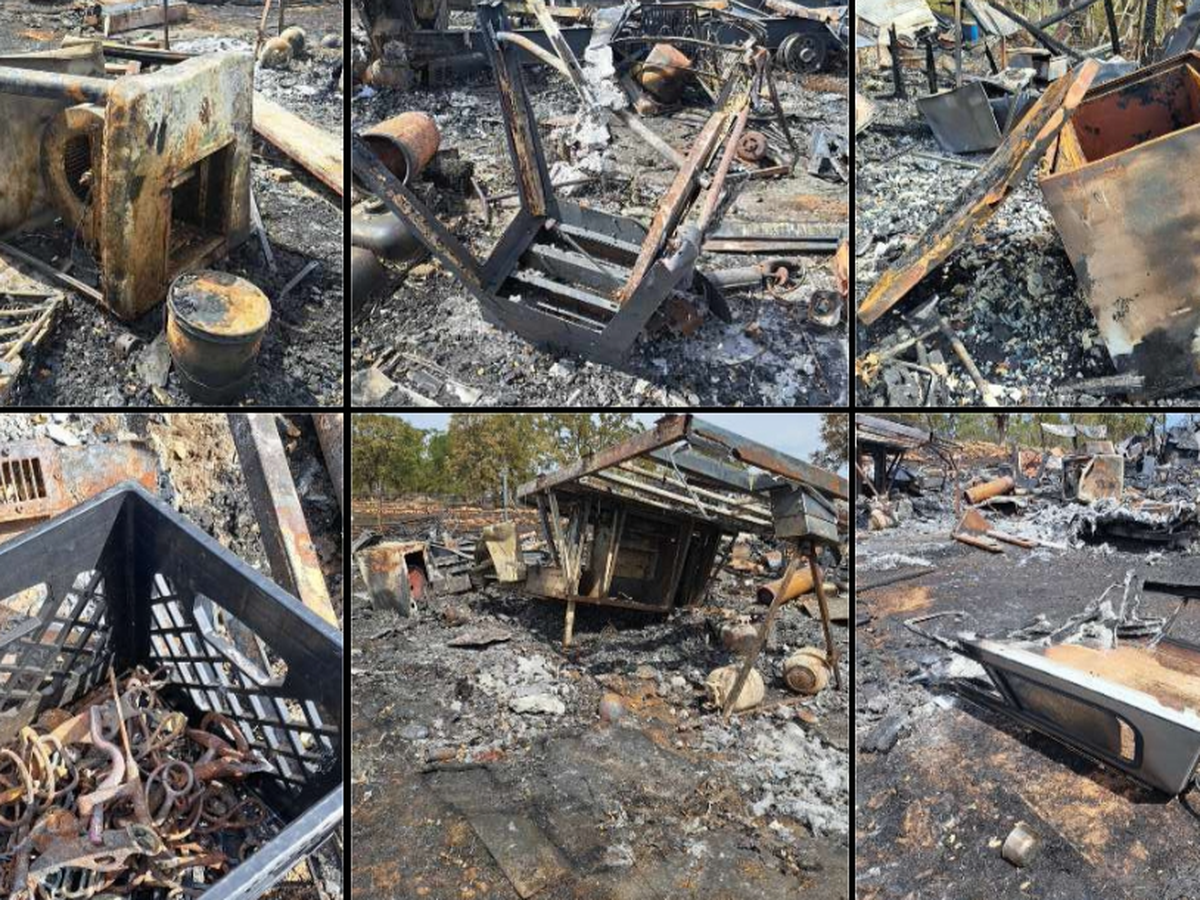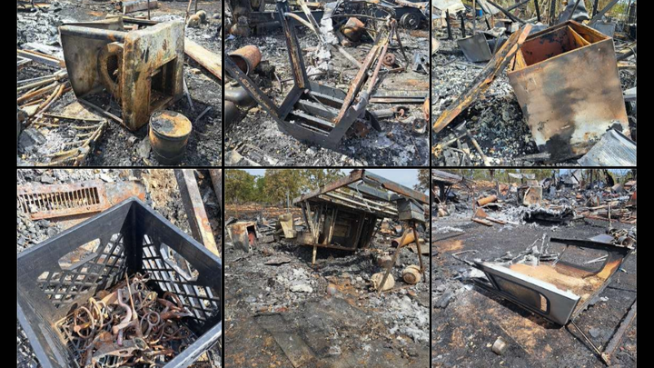 The fire started on a neighboring property; the cause is currently assumed to be lightning. He lost most of his possessions as a 5th wheel burned that stored many belongings, the garage that had most of his things, along with other damage including our 1967 International Scout. Things lost include his daughter's (my sister's) competition horse riding gear, including saddles, reins, bridles, etc.; my dad's tools, including everything in a Snap-on box; all his Ryobi battery tools; horseshoe hat rack making materials (the shoes were the only thing to make it); a drill press; table saws; all but one of his saddles; a working evaporative (swamp) cooler, window ac, his dryer (currently having to figure out how to dry cloths); and much, much more (too much to list).