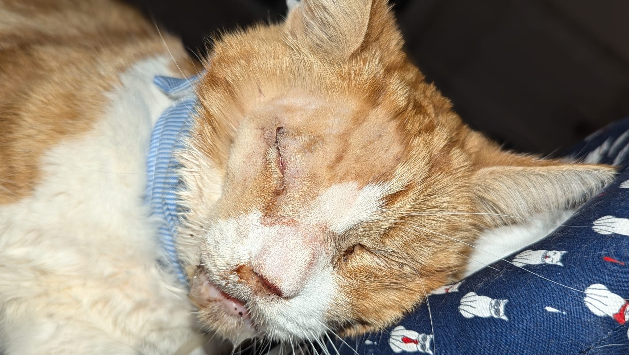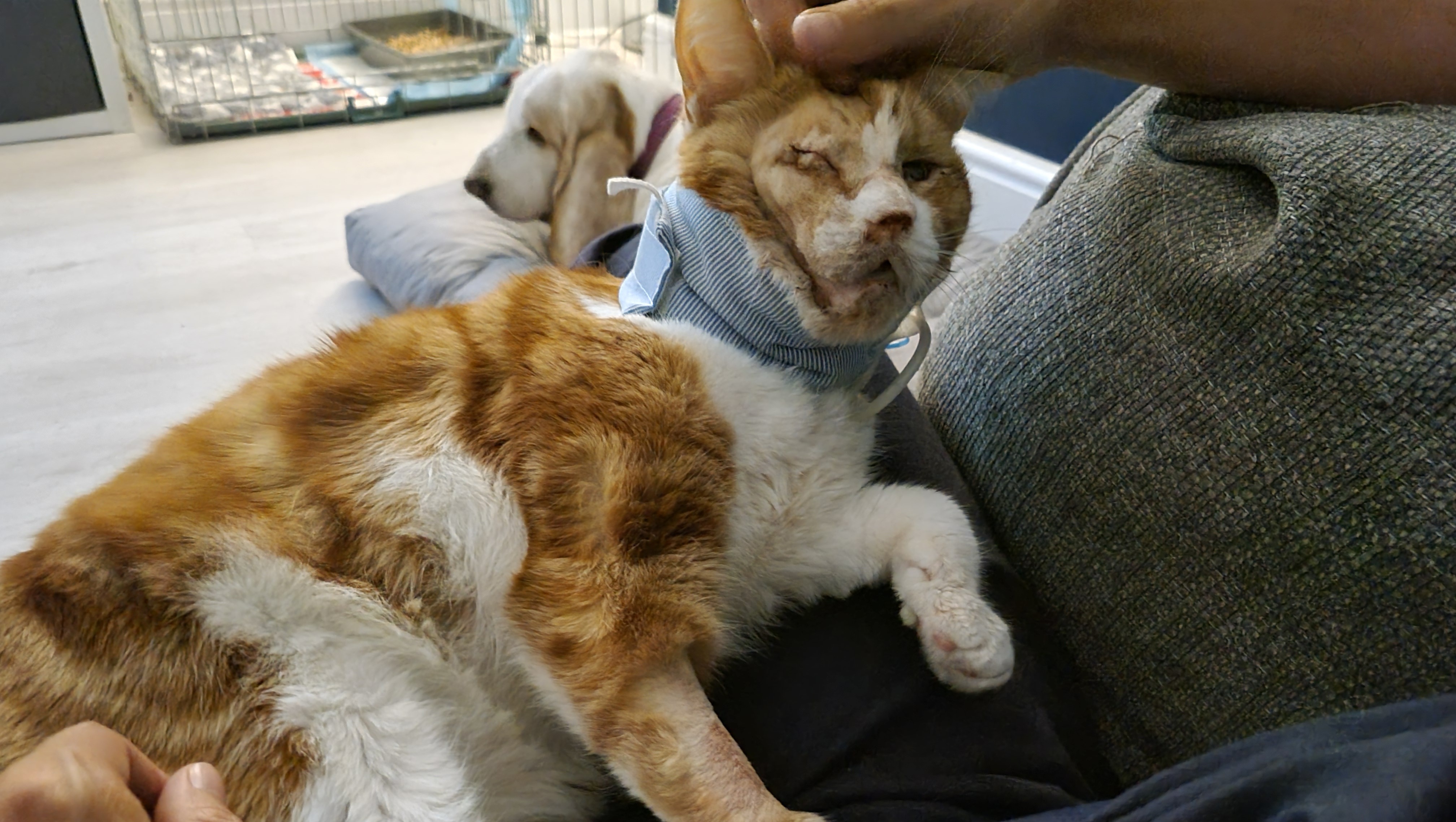 George has endured unimaginable trauma. He has lost one eye and may be blind in the other. He has already undergone surgery to repair fractures on both top and bottom jaw and is tube feeding every 3 hours for the next month or so. Despite these severe injuries, George's spirit remains resilient. We were given the heartbreaking news that it wouldnt be unkind to put him to sleep considering his injuries, but we just couldn't bring ourselves to end his life when there was still hope. We chose to fight for him and hope to give him the best chance at a happy, healthy life, no matter the cost. The bill as of today (9th August) for 5 days inpatient treatment plus this surgery he has had, totals £5,700.