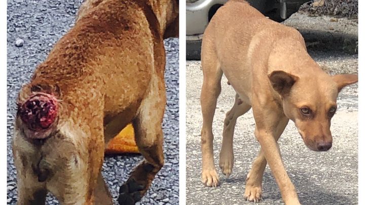 After taking her to the vet, she has been put on topical oinment, antibiotics for the infection, she will need surgery on her wound and she has also tested positive for heartworms.