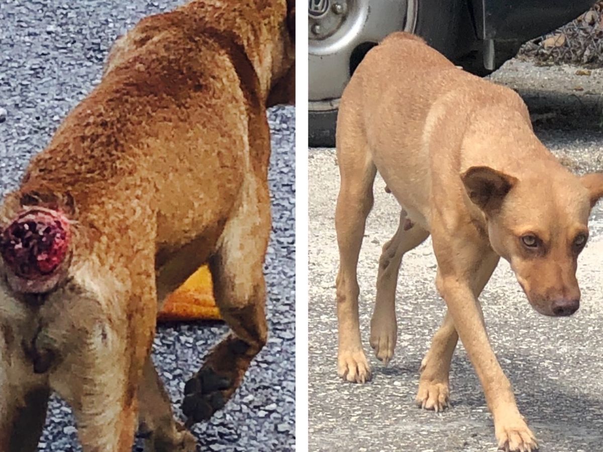 Mia is the sweetest pup who unfortunately had her tail ripped off when a car she was sleeping under ran over it and spooked her into running. Slowly over time her tail was getting shorter and shorter because she was chewing at it that now it is completely gone and severly infected.