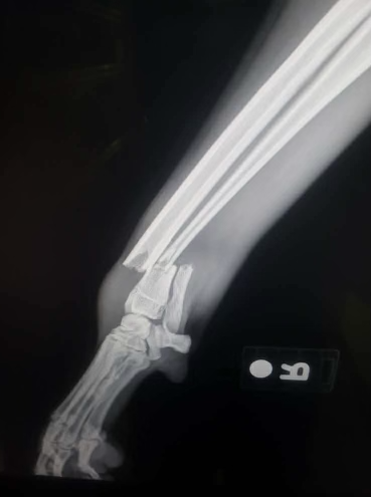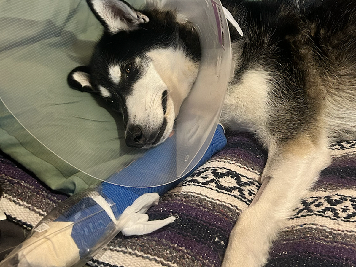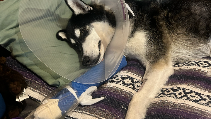 Over the weekend, Pumpkin - also known as Scrump - had a terrible accident while hiking that has resulted in a severely broken leg with breaks in multiple places.