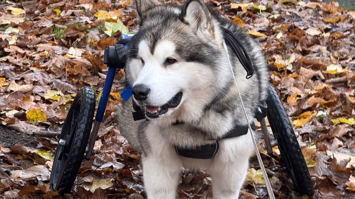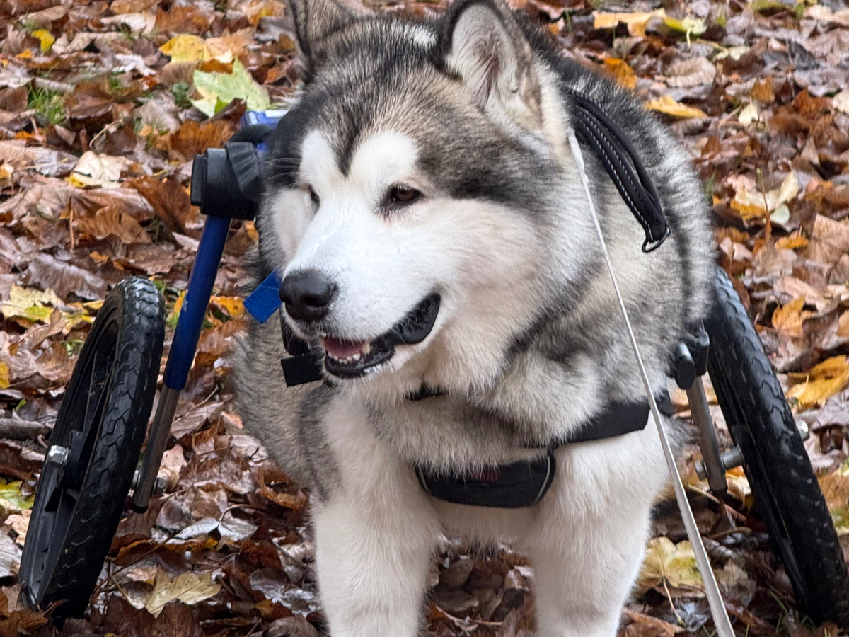 One morning while out on a walk, Ghost suddenly lost all feeling in his back legs. He was rushed straight to the vets and then referred to the Small Animal Teaching Hospital in Liverpool. After four days of hospitalisation, extensive tests, and scans, we were given heartbreaking news. Ghost had suffered a stroke in his spine across a large area, leaving him permanently paralysed in his back legs.