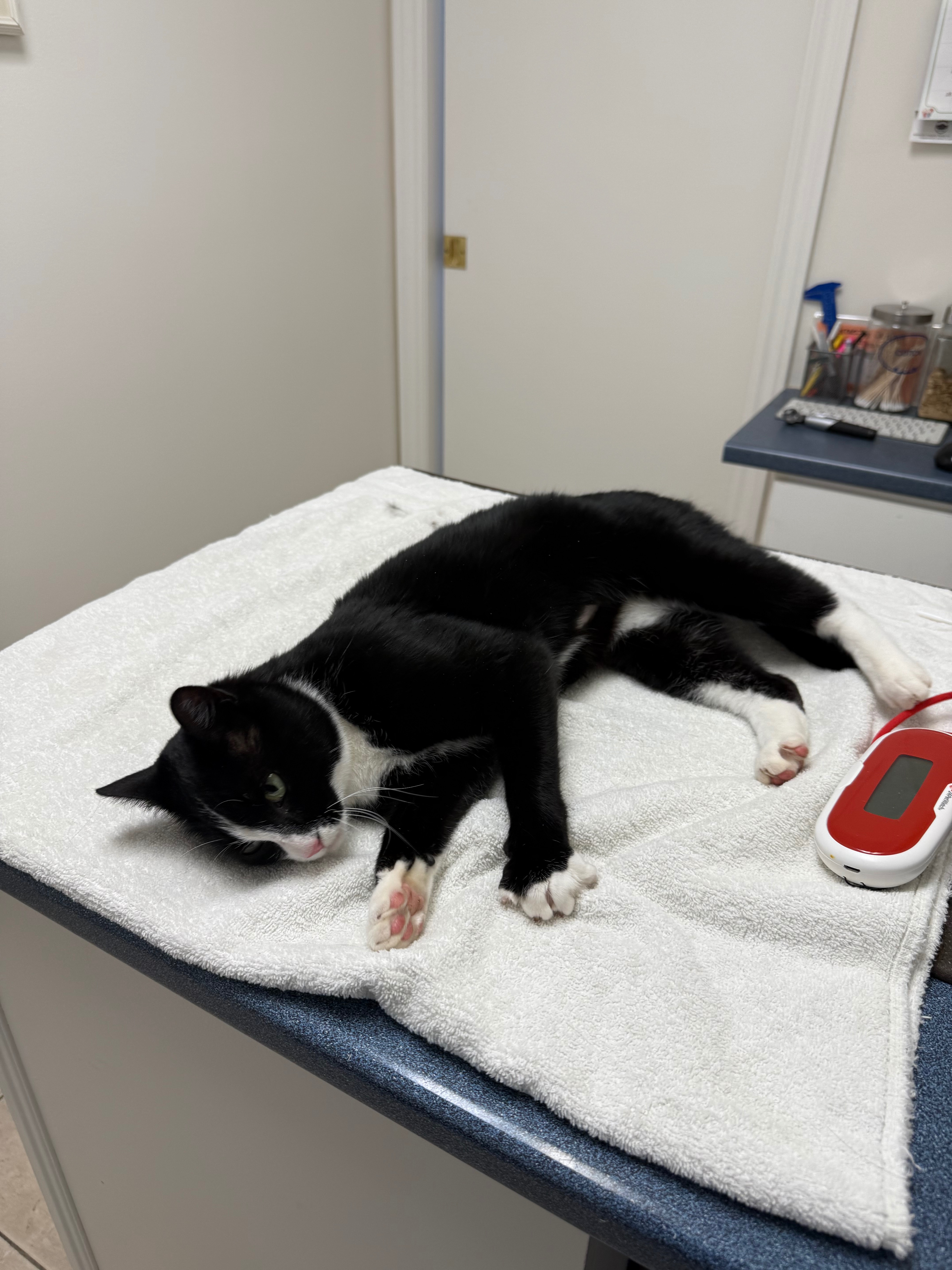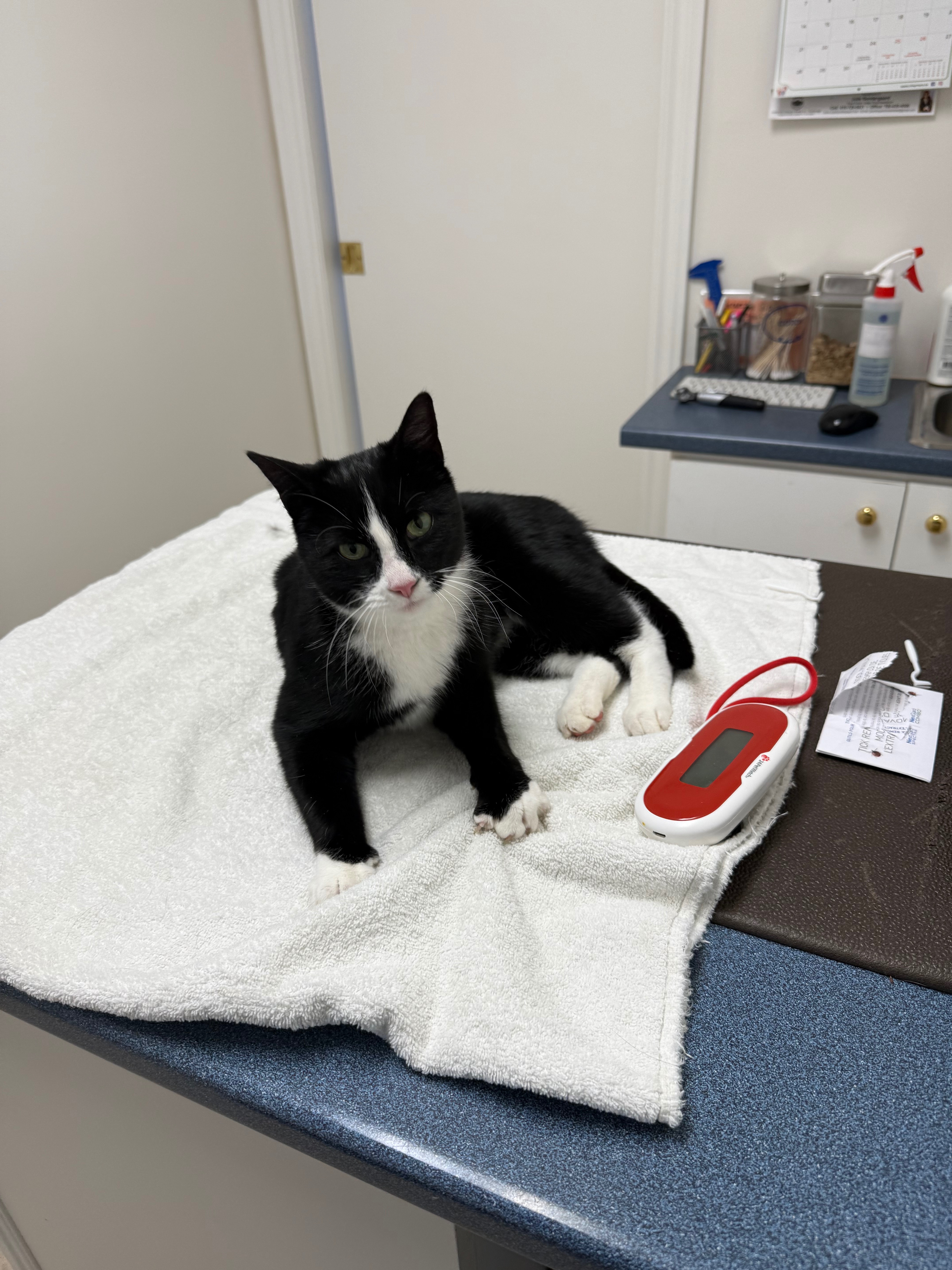 A few days ago, I found a small black-and-white cat on the side of a back road, crying, shivering, underfed, and covered in ticks. I picked her up immediately and brought her somewhere warm. Two different vets confirmed she has no microchip, and I even knocked on all nearby houses. One neighbor told me she’s been surviving as a stray and they feed her when they can.
