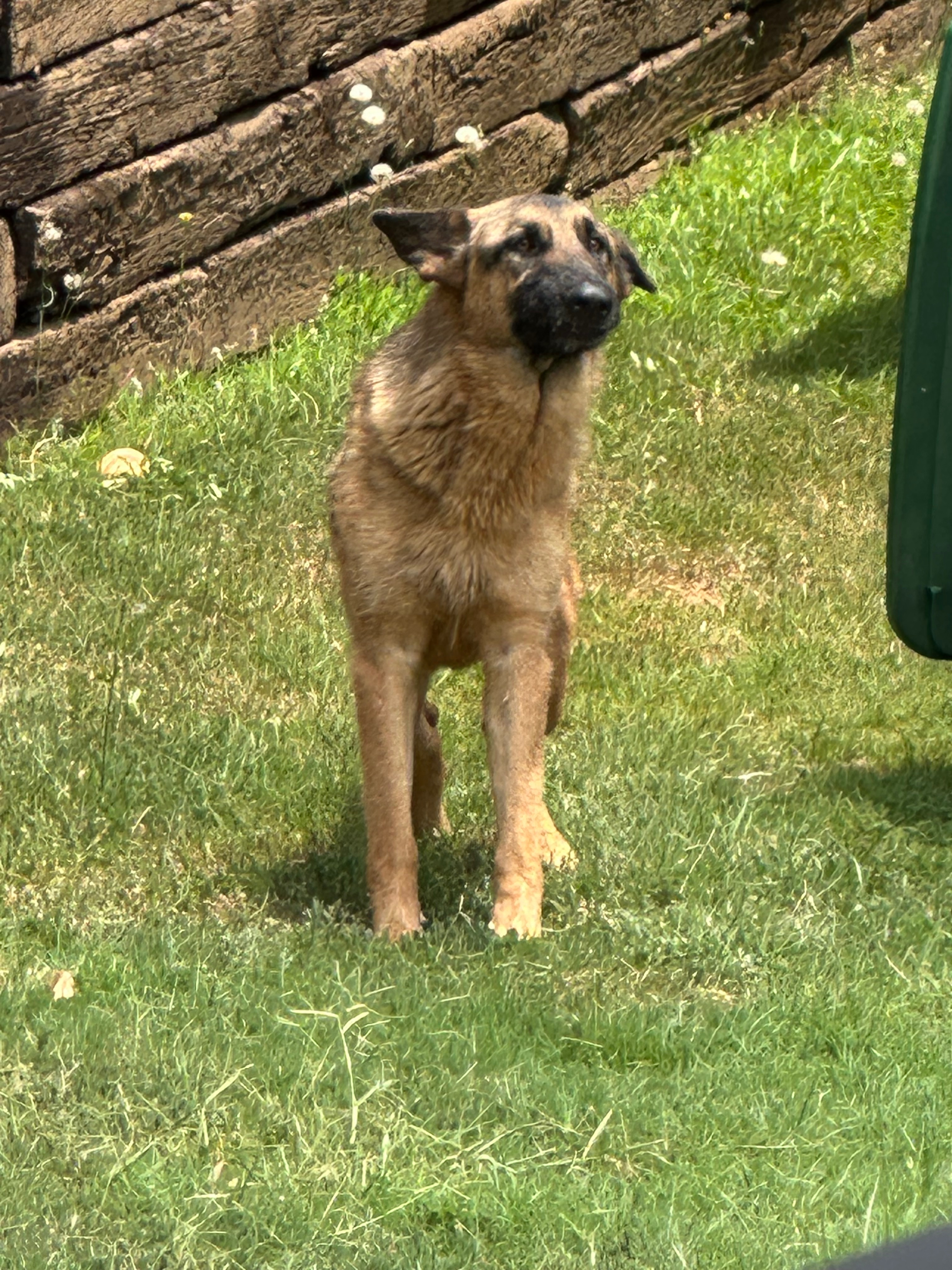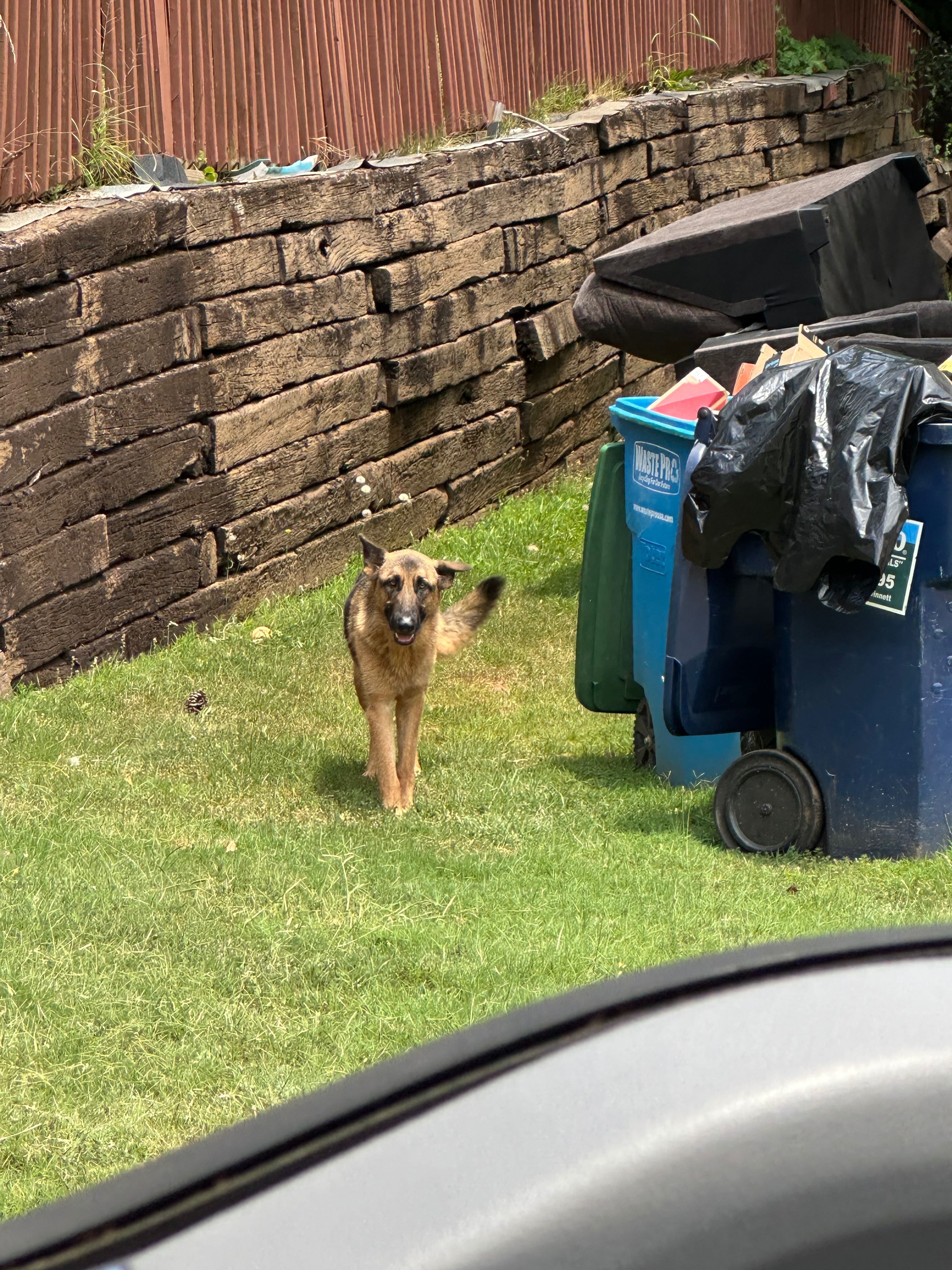 It all started while I was out on a job site picking up a dumpster rental that I had just dropped a couple of days prior. Just another hot sunny day of work, or so I thought. As my helper and I were loading the dumpster onto the truck I noticed a big German Shepherd peek around the side of the house behind the trash can. He immediately approached us in a slow and unsure manner. At first, we were a little on edge as he creeped toward us since we had no idea of his temperament and it was clear that no one was supervising him. As he got closer, I could see that his ribs were showing through his thick coat. He was tired, dehydrated, and even had a limp. My helper then hesitantly reached his hand out and the dog immediately folded his ears back, tucked his head, and subtly wagged his tail. Although skittish, it was at this moment that I knew this was a cry for help. He just didn’t know how to ask for it.