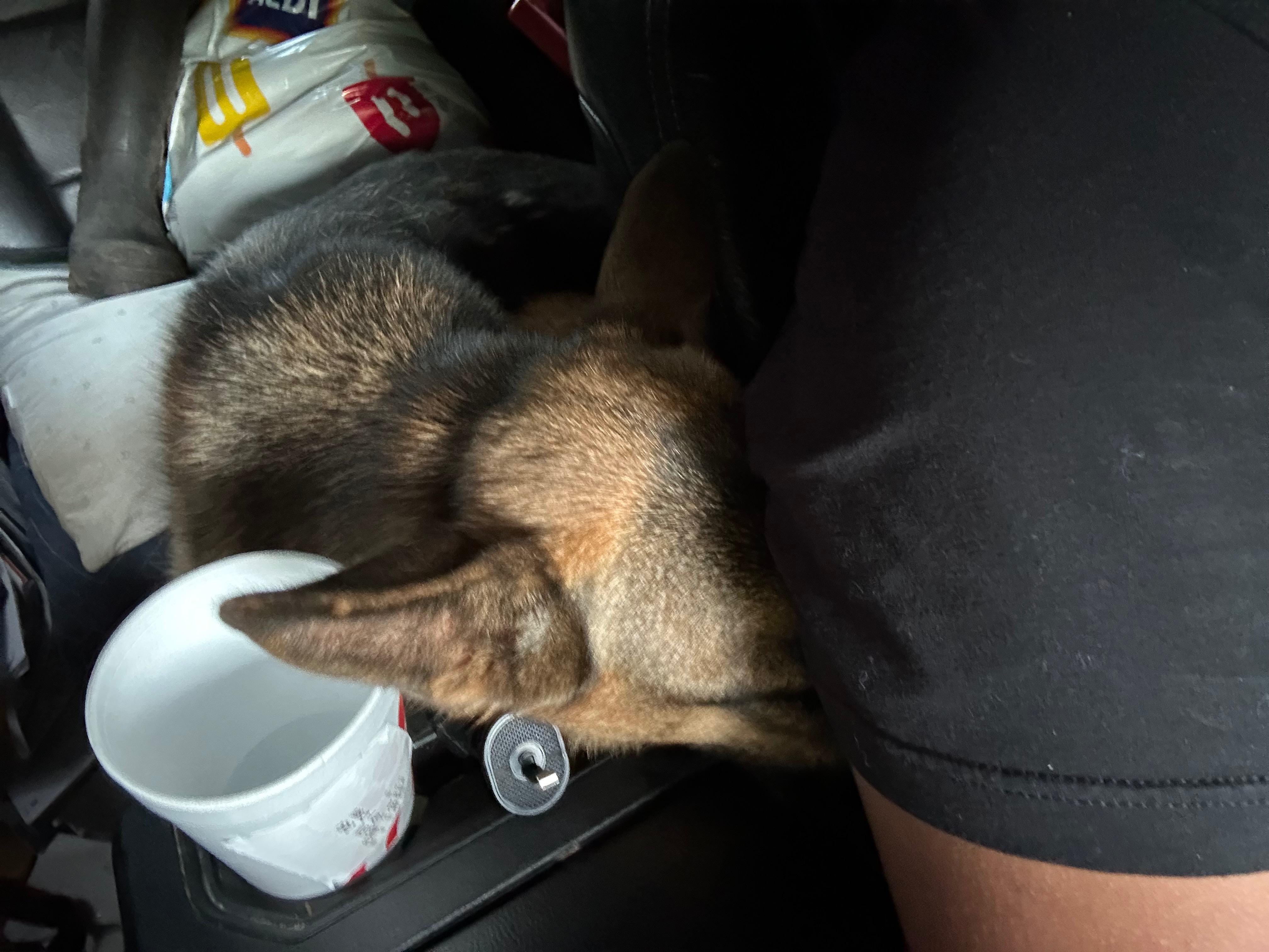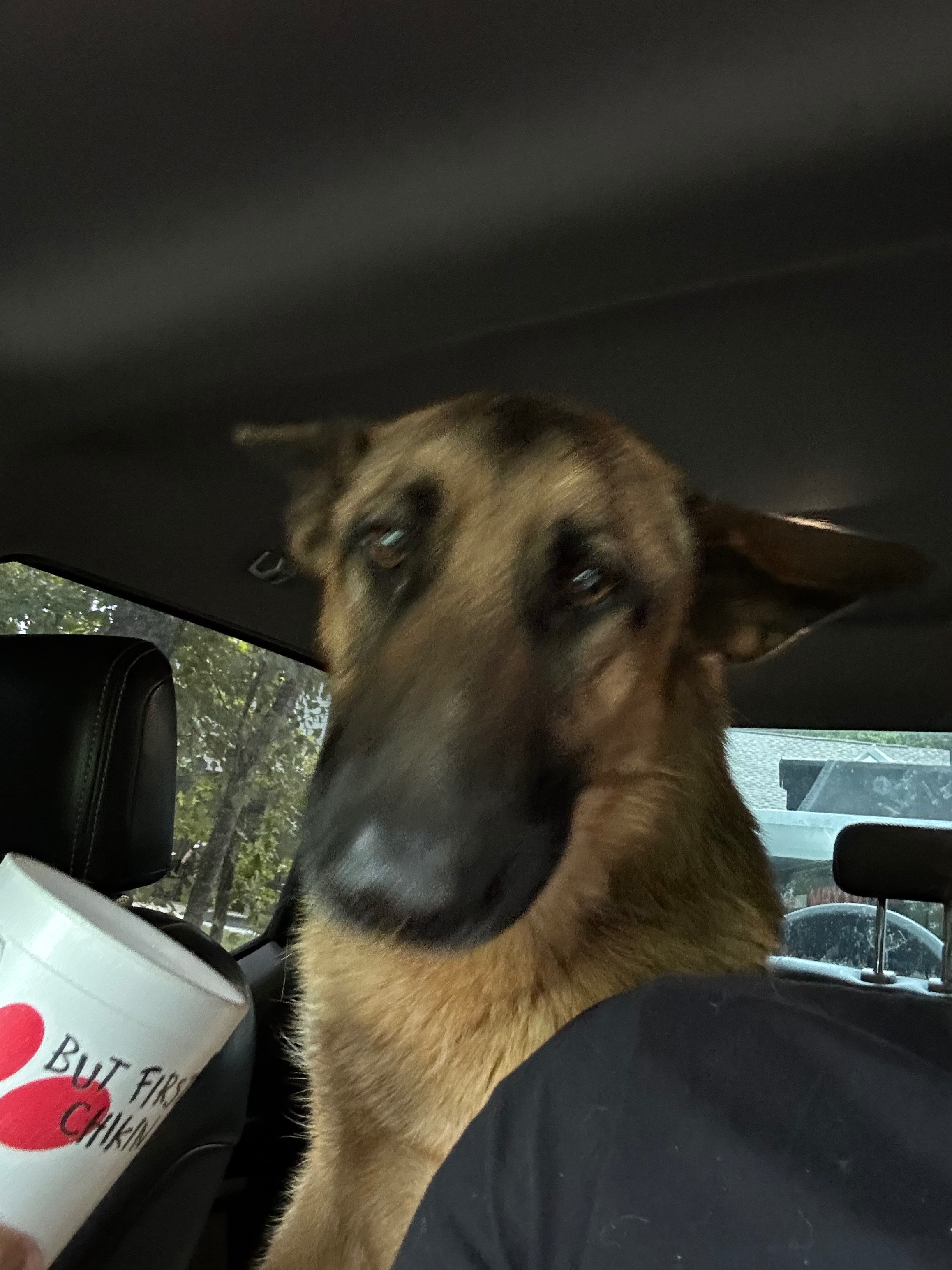 I quickly went back to my truck to grab my Chick-fil-a cup that had leftover water in it. He rushed to the cup and drank as much as he could leaving just a little bit of water left. This confirmed to me that this was indeed a cry for help. My first thought was to take him in based on the clear neglect he was receiving but before doing so I reached out to the customer who rented the dumpster from me to ask whose dog that was. He informed me that he belonged to the neighbor directly behind him. I then told him that I just wanted to double check with him before accidentally kidnapping someone’s dog. He then reached back out to me a few minutes later letting me know that he reached out to that neighbor. This is when he informed me that the dog belonged to the neighbor’s son and that the son has since moved out, leaving the dog behind. My customer then said that the neighbor told him that I can take him. This left me with the assumption that the parents of the son has been neglecting him since the son left and had no intention of bringing him back in which would explain why he had no collar, no harness, and no tags. Just tired eyes and a fragile body.