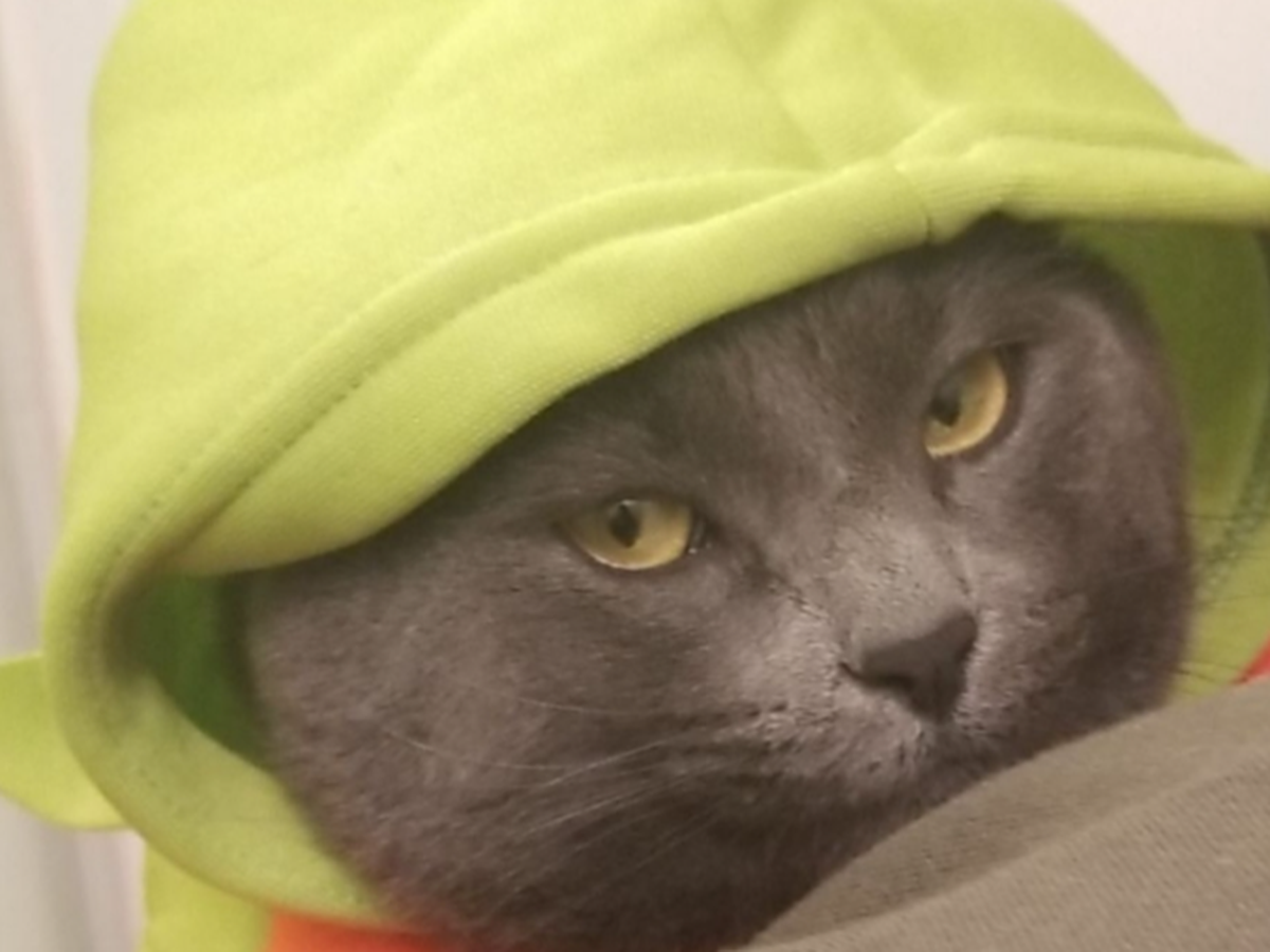 On 4/20 /2016 we found w cat in a box in the alley. My daughter convinced me to let her keep it and he became her person.