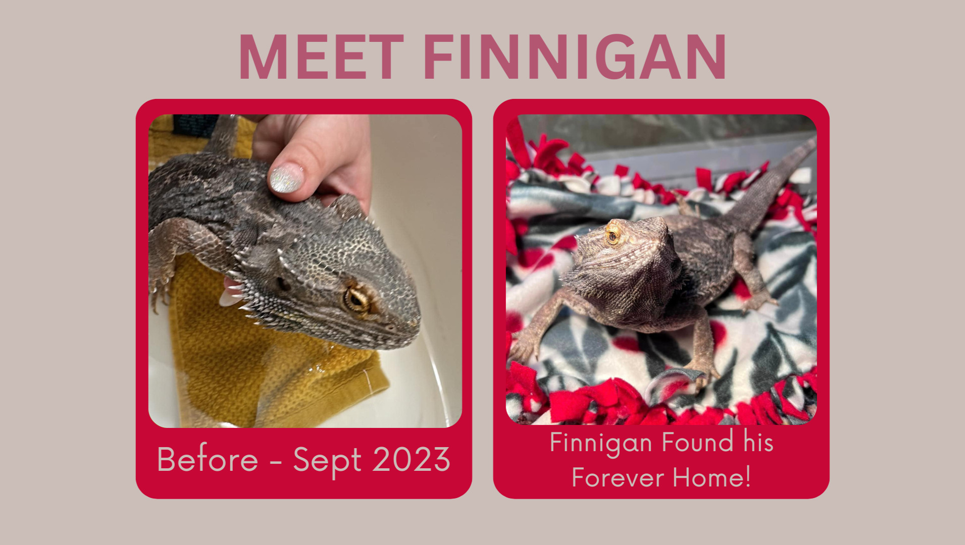 Finnigan was owned by a roommate of the previous owner. He was severely neglected, suffered an injury to his back, and was not provided with heat or UVB. The other roommate took it upon themselves to help Finnigan, but didn’t know how to quite take care of him and surrendered him to me to give him A Shedding Chance!