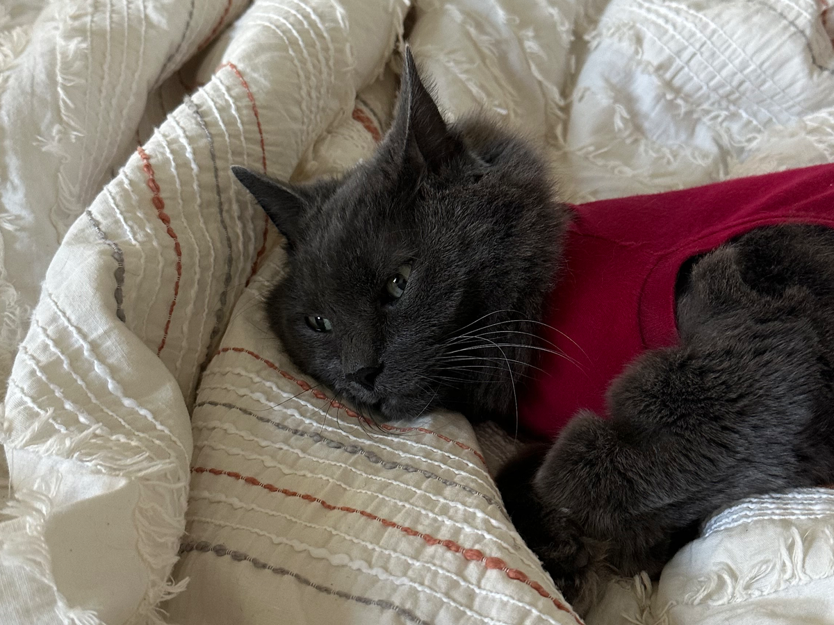 Unfortunately, in late April of 2025 we came home to find Rupert bleeding from his stomach and we soon discovered that Rupert has a rare form of cancer known as Feline Ventral Abdominal Lymphangiosarcoma. The wonderful veterinarians at All Paws in Whitehorse, Yukon were able to perform surgery with the goal of removing all cancerous cells. Despite the veterinarians best efforts, Rupert's margins were not clean and we received news that Rupert will require another life saving surgery.