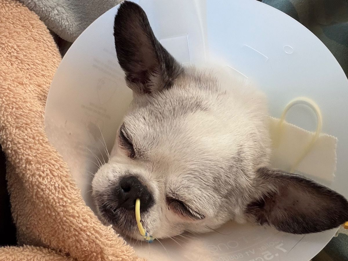 Hi everyone, this is Gizmo. We had a highly unusual incident last week while I was babysitting. He is a healthy 15-year-old Chihuahua. I had fed both Gizmo and my dog Penelope some new dog food I had bought. Healthy, high-quality dog food that gave both dogs diarrhea for over a week. But because of Gizmo's age and switching brands, he had uncontrollable diarrhea and was throwing up. By day three, he was throwing up bile and had blood in his stools. I took him to the emergency vet hospital, and they ran lots of tests. Bloodwork came back that all of his organs and everything was fine. It was just inflamed intestines and stomach lining. I took him home that night; no more throwing up, but he had more diarrhea, and the next morning it was pure blood. I rushed him back to the emergency vet, where he stayed another three days. Lots of blood work, multiple sonograms, chest x-rays; there was an IV in his arm for two days until his veins collapsed, and they had to put the IV in an artery in his neck. Poor baby, and because he hadn't eaten in so long, his blood glucose levels kept dropping, and his body became limp. They had to put a tube through his nose down into his stomach to start tube feeding him. He finally perked up on the third day, getting some nutrients in him. I thought we were going to lose him. The tears, the anxiety, the chronic stress… I haven't even processed or healed from having to put my own Chihuahua down five weeks ago. To lose another dog would have thrown me over the edge. Gizmo was released on day three, feeling very weak, and he would not eat for two more days, which was very alarming because if his blood glucose dropped too low, he could have a seizure and die. He is starting to eat a little bit now and is on the up and up, thank God. It's a miracle. Four days in the emergency vet hospital after all the tests they ran.