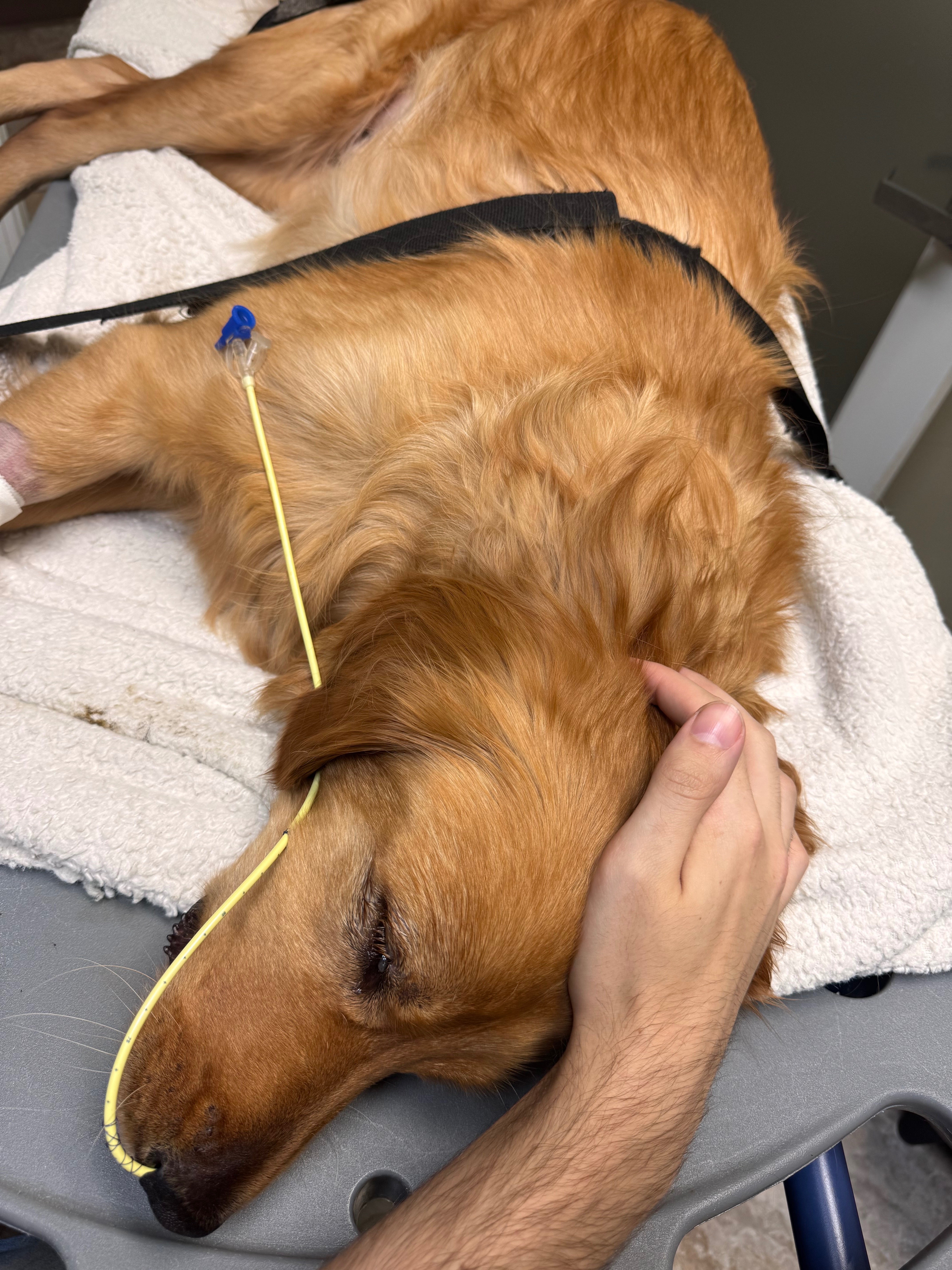 It all started on the morning of Wednesday, May 14th. Goose threw up once, it looked strange, and then he refused breakfast. Later that morning, he threw up again. Something in my gut told me this wasn’t normal. I took him to our vet immediately. At that point, he was still alert and somewhat himself, so they gave him some anti-nausea medication and sent us home with instructions to monitor him. Looking back, I wish I had pushed for an X-ray then; it haunts me, knowing it might’ve spared him so much pain.