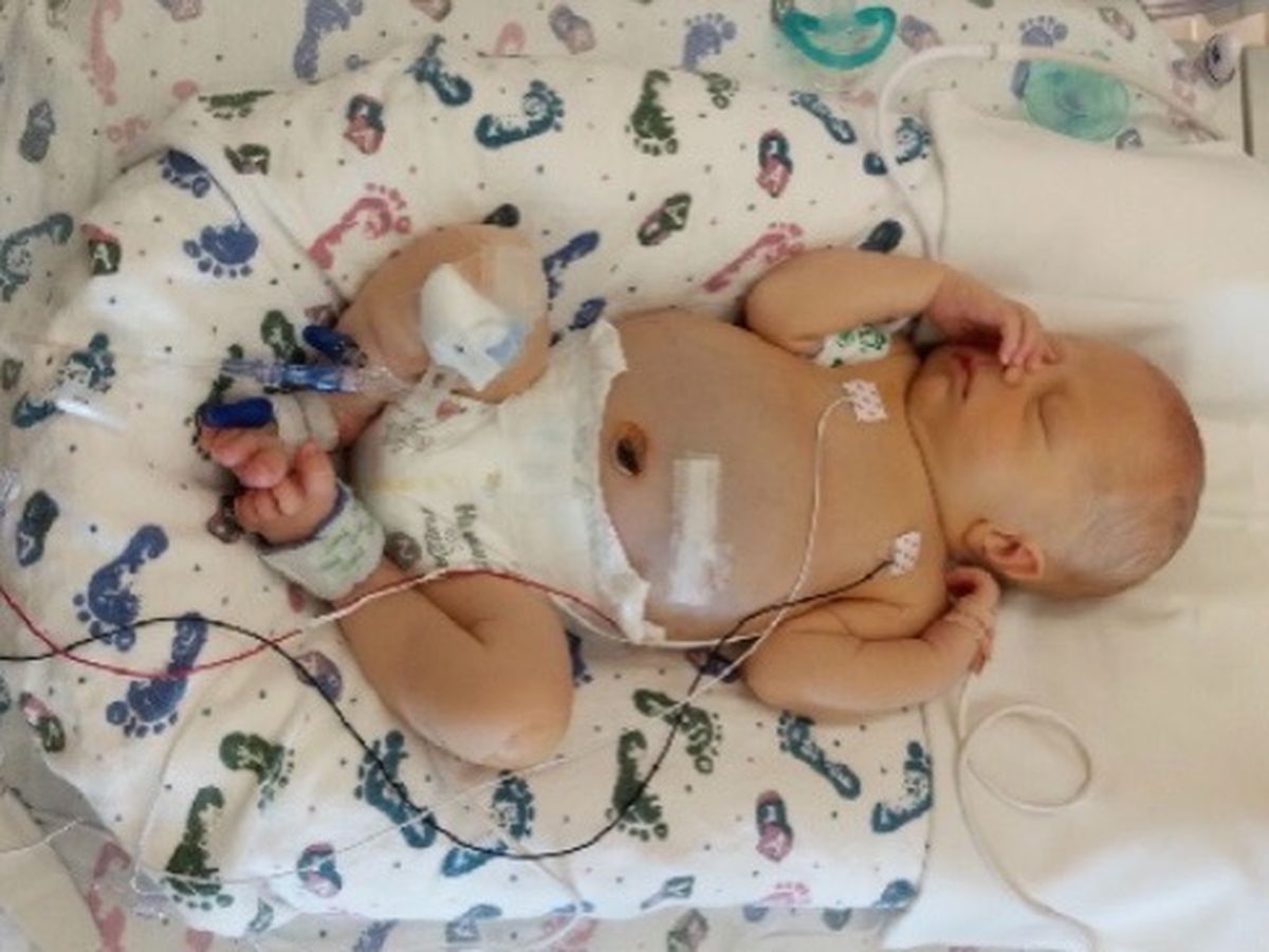 During his central venous catheter placement, his thoracic duct was injured, causing his belly to fill with lymphatic fluid. His mother had to use a centrifuge to remove all the fat from her breast milk so the duct could heal. It had to be put down a nasogastric tube because he wouldn’t drink it.