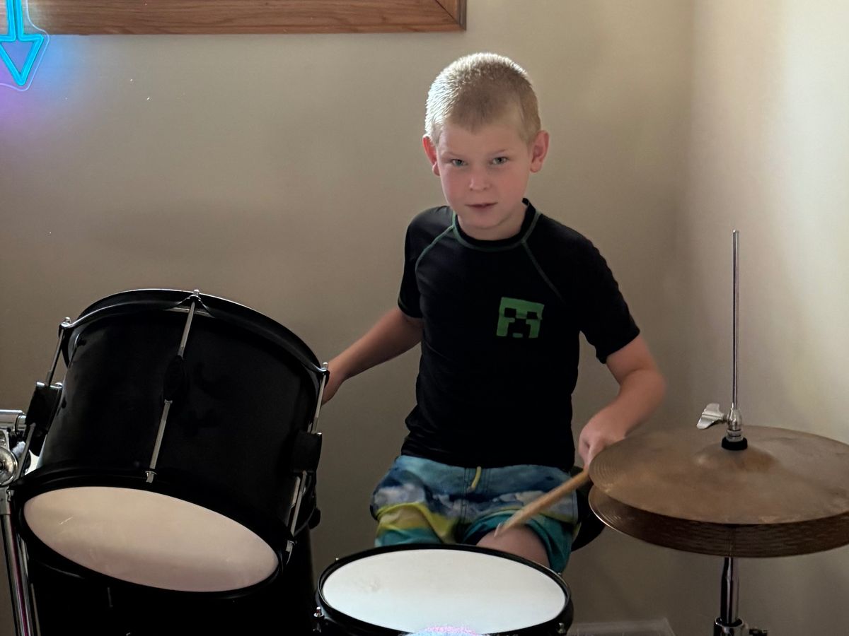Gus is almost 10 years old and has recently discovered a passion for music, especially the drums. Just a month ago, he sat down at a drum set for the first time and immediately showed a natural ability that runs in our family. With a long line of musicians behind him, it’s clear that Gus has inherited a real talent and love for music.