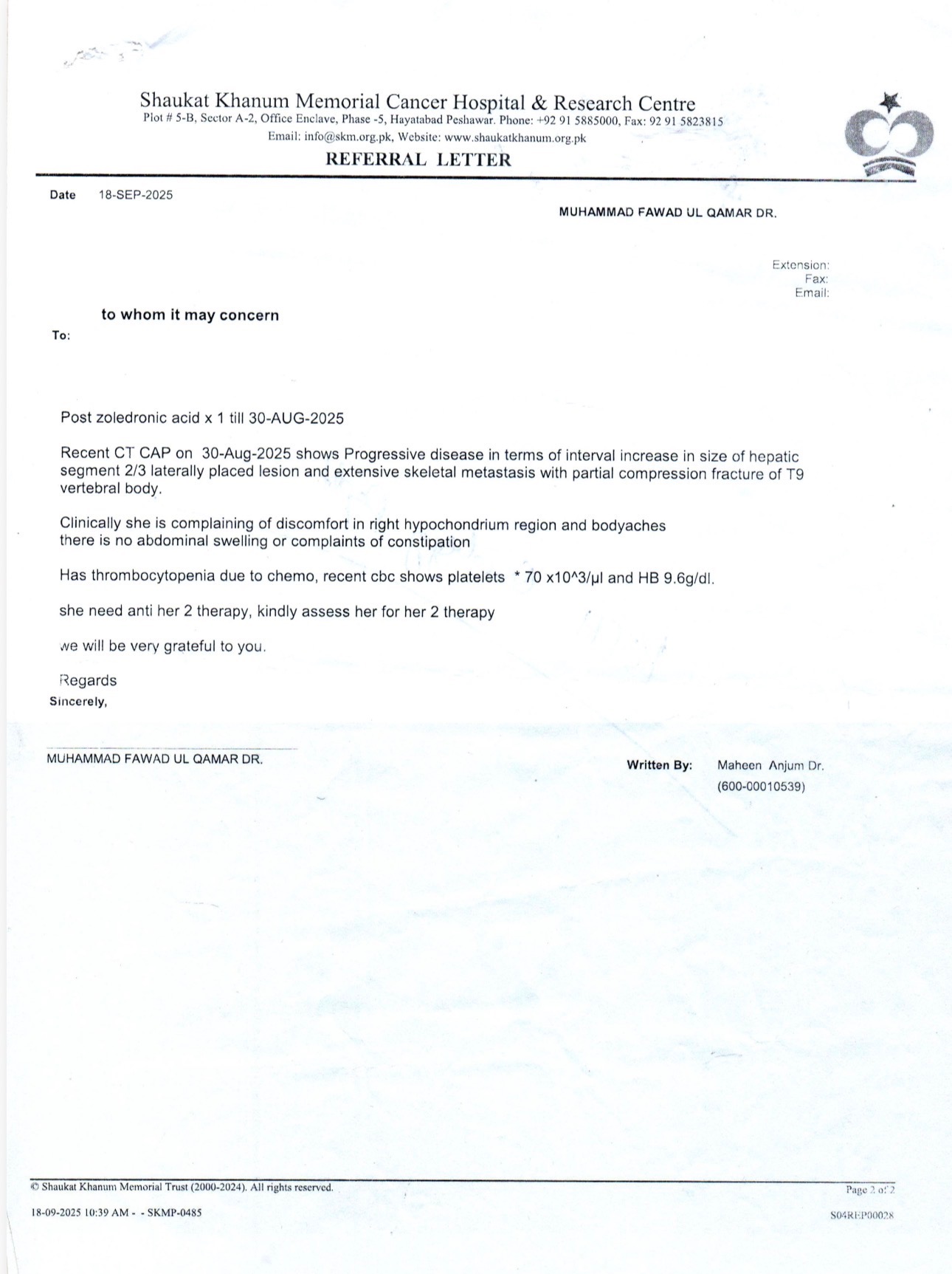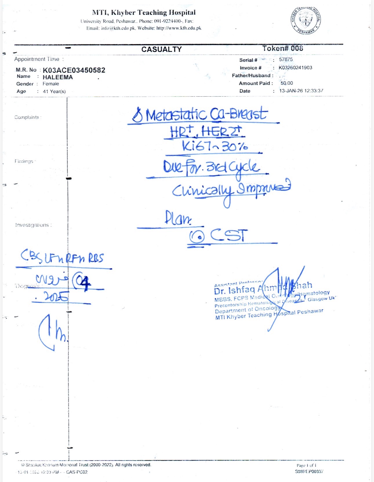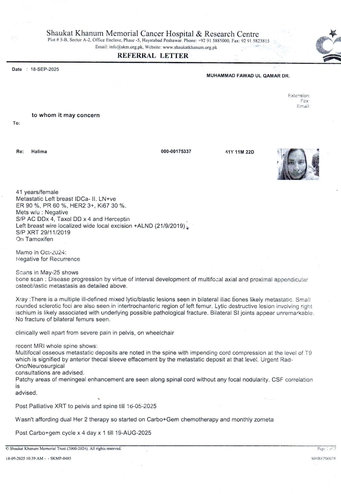 Halima is my older sister, a devoted 41-year-old mother of three—her 14-year-old son and two daughters, ages 10 and 8. She has always been a source of strength and love for her family, but now she is facing the toughest battle of her life: metastatic breast cancer. After her initial treatment at Shaukat Khanum Hospital in Pakistan, we learned that the cancer had spread to her bones, making her need for urgent and ongoing care even more critical.