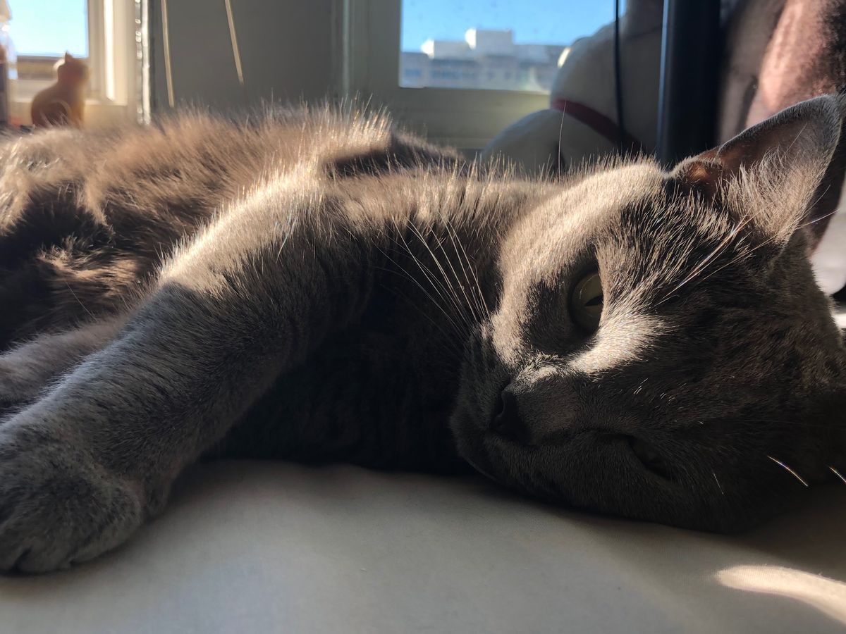 Hi, My name is Oil. And this is my cat, Hallow. Russian Blue mix cat.