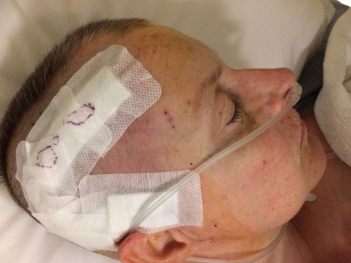 The Missus getting the rest of her head shaved after surgery #2