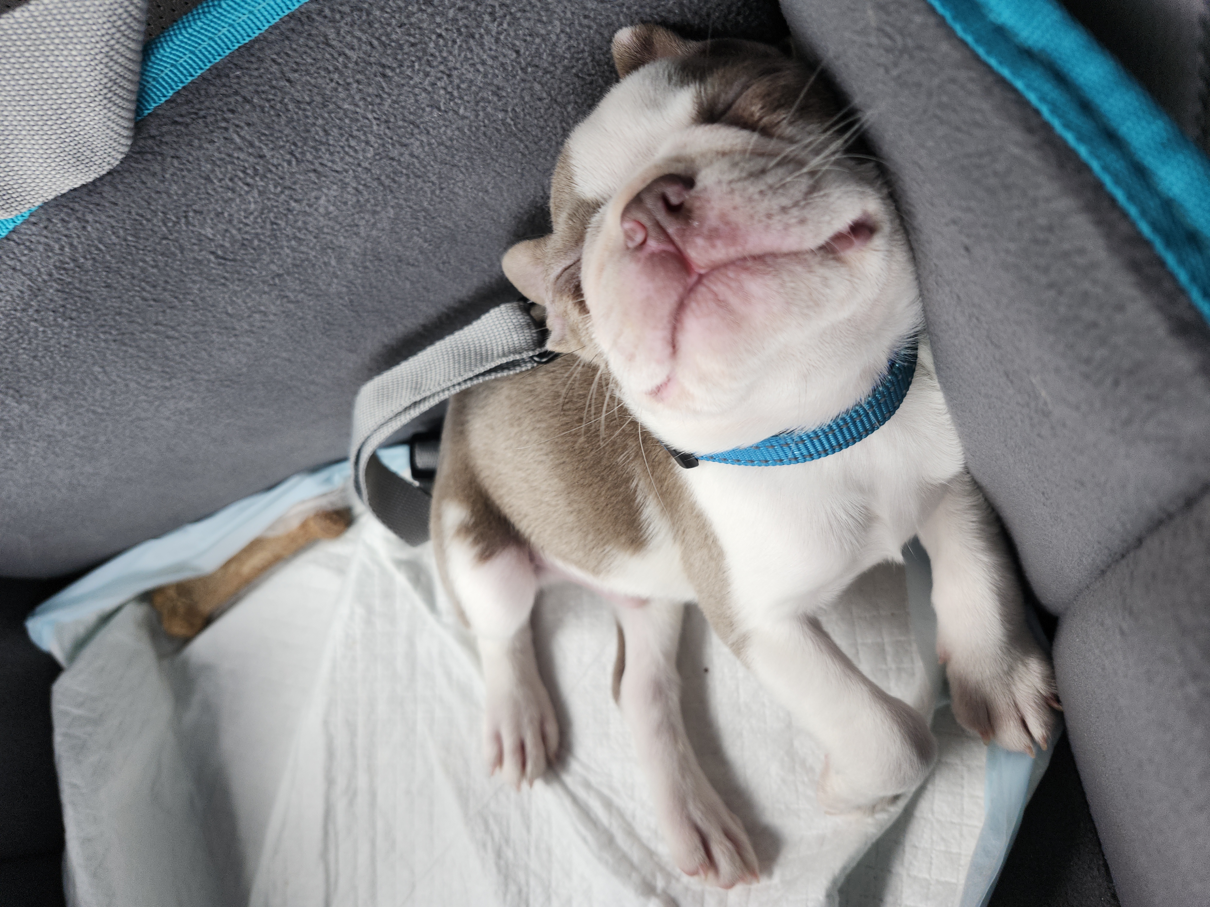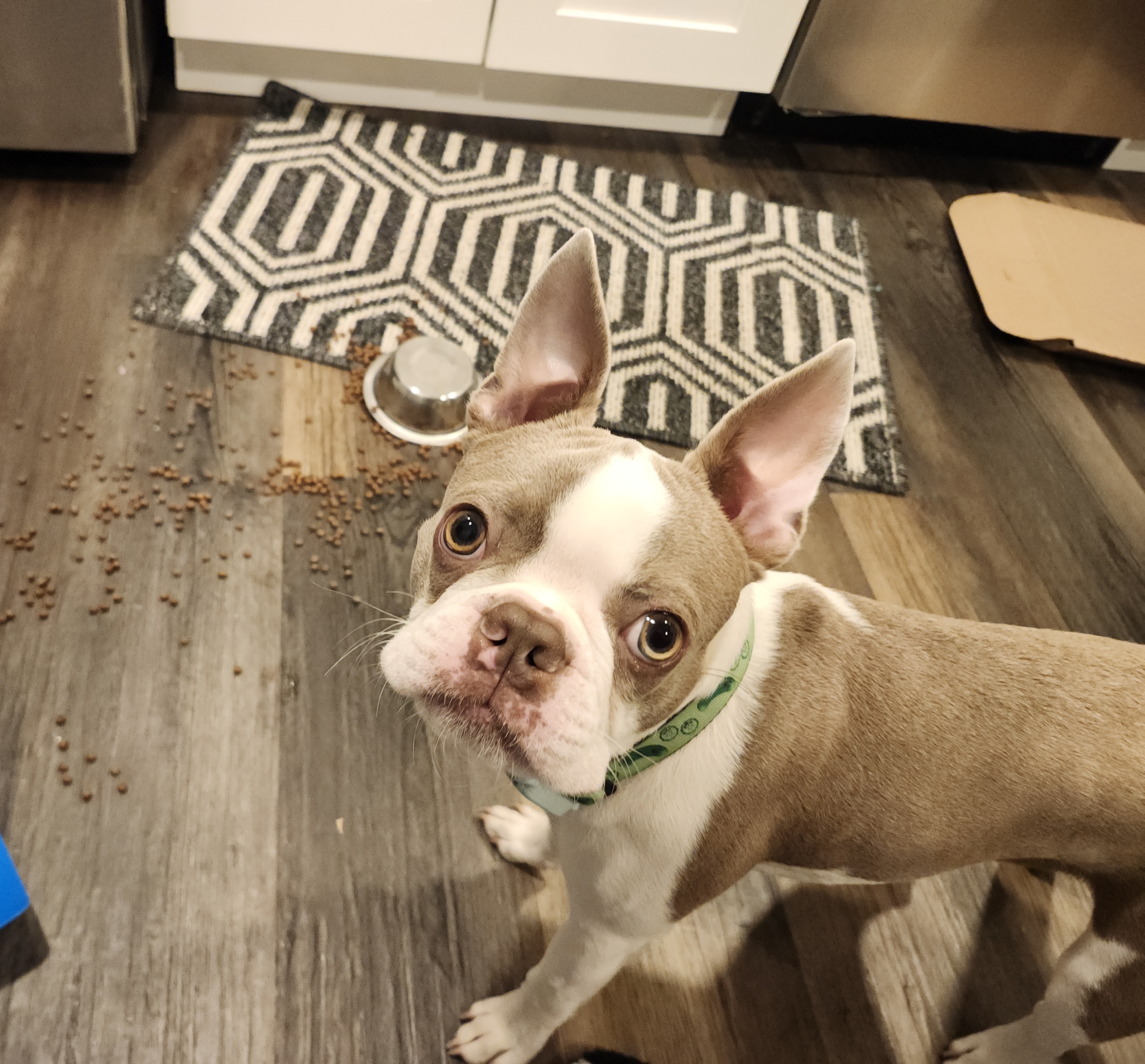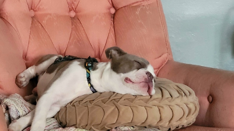 I first laid my eyes on Henri in May 2025, shortly after the passing of my other dog Ray, in April of 2025. I decided to start looking for a dog after Ray, as the house was too quiet especially after losing my first dog, Biggsby, just a year prior. My heart was very empty. I was devastated. I’ve always loved Boston terriers. Both of my previous dogs were Boston terriers and I wanted Henri to carry on that legacy. I completely forgot how much energy puppies have, as my other two boys were 14, and 10 when they passed, but he's worth every cleaned mess and destroyed object.