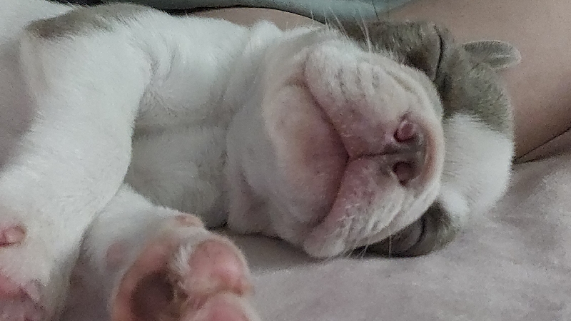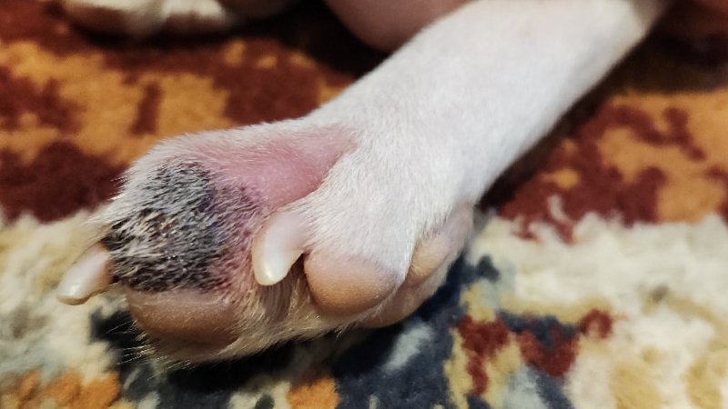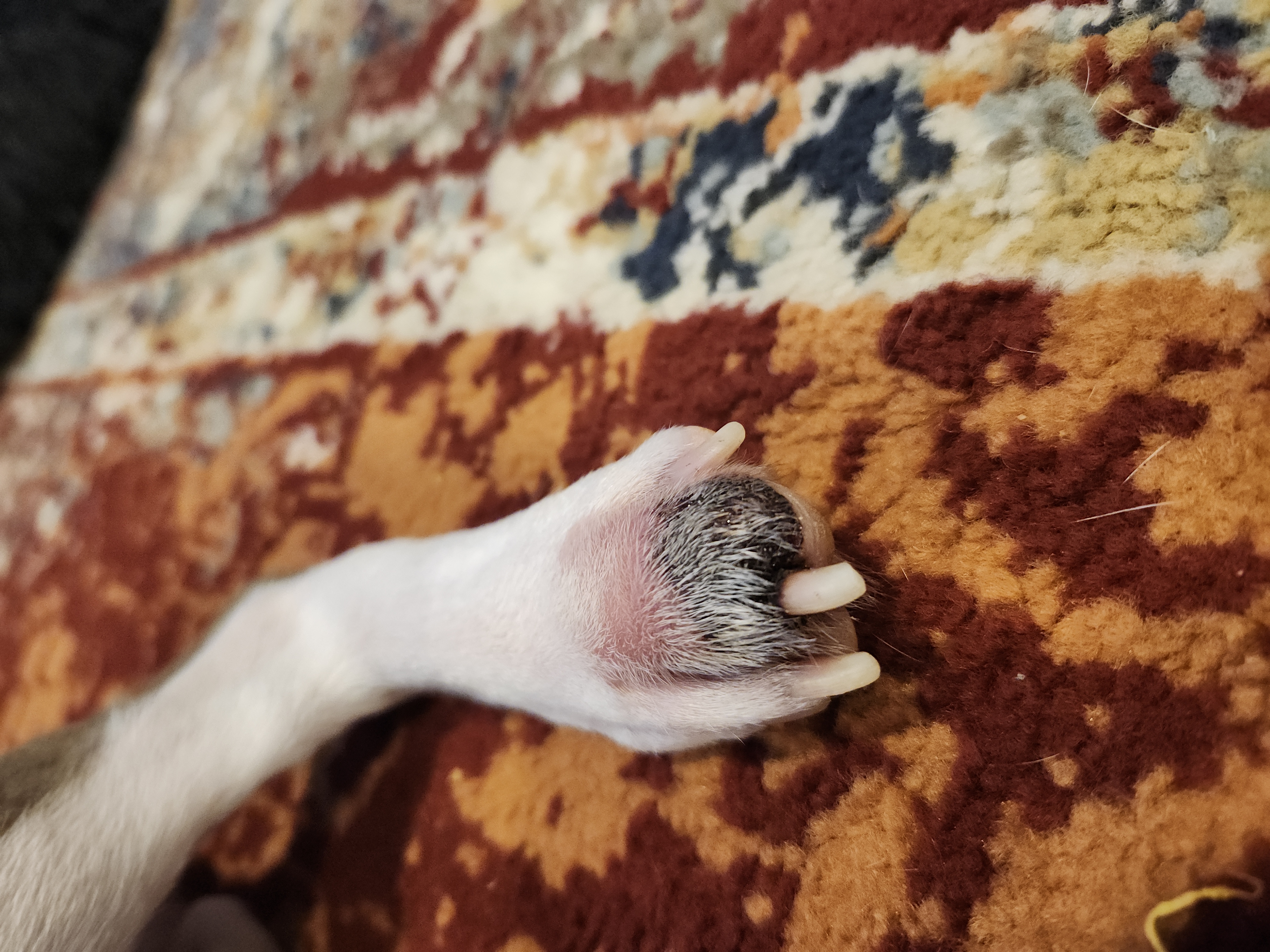 Our next followup (after the 2 month mark) was to monitor the fungal levels in his blood and his liver values. 10 days before that appointment, I noticed the toe on his back left paw was a bit swollen and what looked like a small black scab had appeared. Over the coming days I continued to monitor and clean his paw and noticed the swelling increased and the black spot begin growing. Henri would sometimes hold up his paw from the pain. When we were seen for our appointment, the vet put him on antibiotics (for his paw) while we waited for the results of more blood work ( for the fungal infection and liver values)