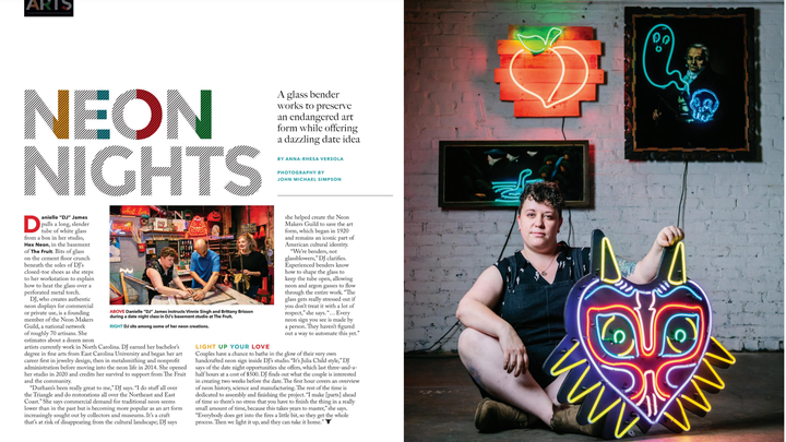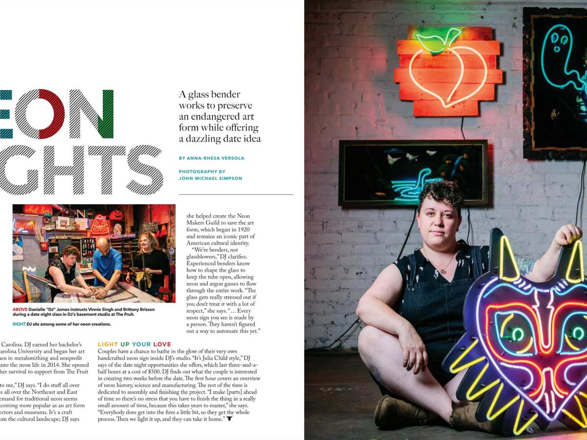 Hex Neon has gained a reputation for our exceptional customer service, craftsmanship and innovative designs. Our current shop space, while unique and functional, has become increasingly limited as our project sizes continue to grow. We will forever be grateful to THE FRUIT in downtown Durham for incubating Hex Neon for the last four years but by moving to a larger facility across town, we will be able to accommodate larger classes, allowing us to share our knowledge and passion for neon fabrication with a wider audience. This expansion will also enable us to introduce more diverse and advanced apprenticeship programming, fostering creativity and pushing the boundaries of what can be achieved with neon.