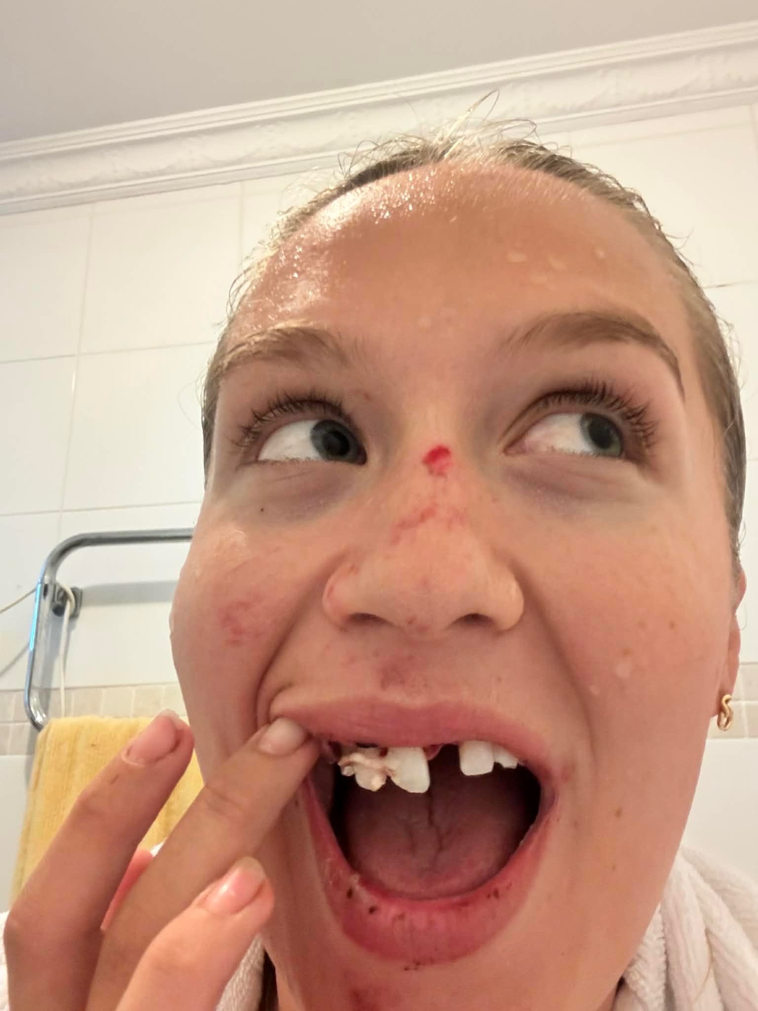 The impact caused severe trauma to her mouth and face and shattered her front teeth.